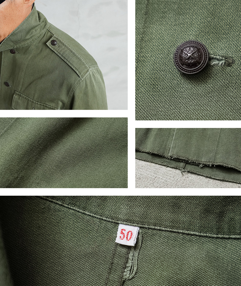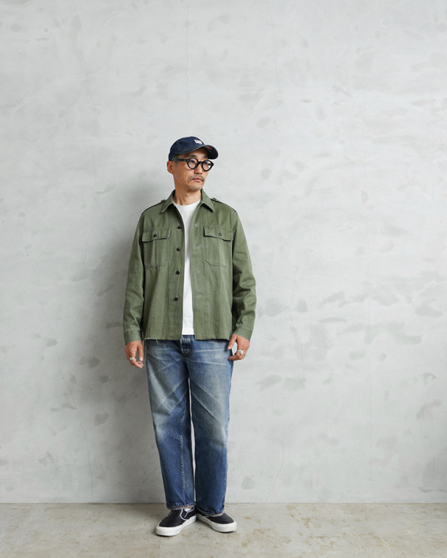 | 商品説明 | 実物 USED ハンガリー軍 フィールド シャツ ジャケット 裾未処理のご紹介です。 ハンガリー軍で1970年代頃から採用されていたフィールドシャツジャケットが入荷しました。 コットンが使用されたこちらのシャツジャケットは、シャツ感覚でも着れますし、ジャケット感覚でも羽織れる、シャツより少し厚手の素材が使用されています。 フロントのボタン留めのフラップポケットやフロントボタン、袖口はエンブレムボタンを使用、襟元はオープンカラーシャツのデザインですが、1番上までボタン留めできるので着こなしの幅が広がるディテールになっています。 ライトアウターとしても使用できますので、春や秋にはシャツやTシャツの上に軽く羽織れて、冬にはスウェットやフーディなどの上に着て防寒性を高めることのできる着まわしがきくジャケットです。 シンプルでベーシックなデザインの中にハンガリー軍の個性を感じさせるアイテムです。 |