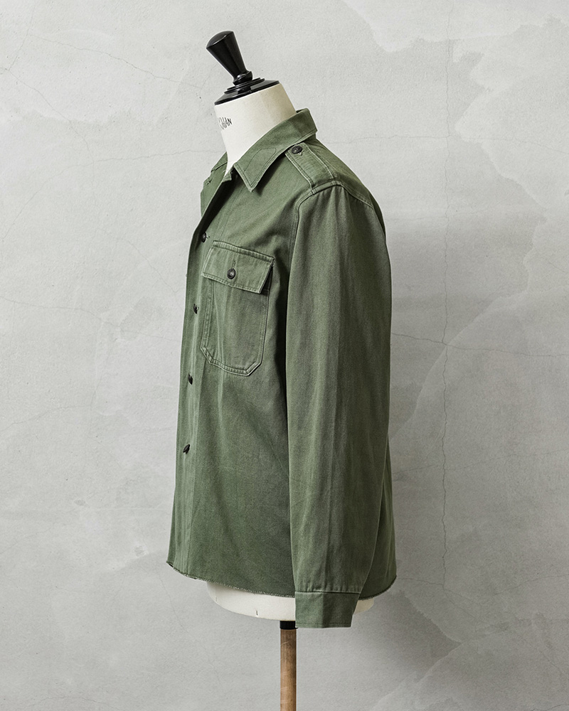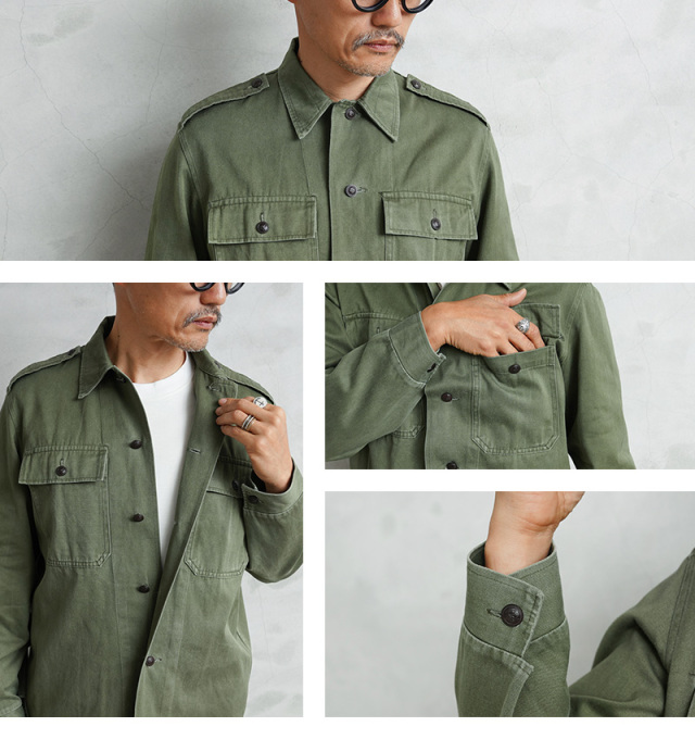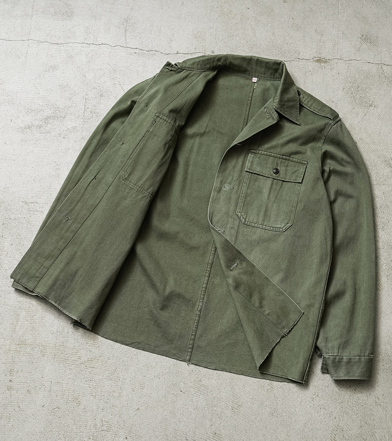 ハンガリー軍で1970年代頃から採用されていたフィールドシャツジャケットが入荷しました。コットンが使用されたこちらのシャツジャケットは、シャツ感覚でも着れますし、ジャケット感覚でも羽織れる、シャツより少し厚手の素材が使用されています。フロントのボタン留めのフラップポケットやフロントボタン、袖口はエンブレムボタンを使用、襟元はオープンカラーシャツのデザインですが、1番上までボタン留めできるので着こなしの幅が広がるディテールになっています。ライトアウターとしても使用できますので、春や秋にはシャツやTシャツの上に軽く羽織れて、冬にはスウェットやフーディなどの上に着て防寒性を高めることのできる着まわしがきくジャケットです。