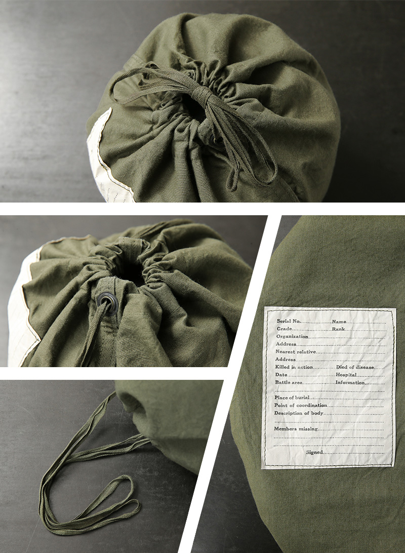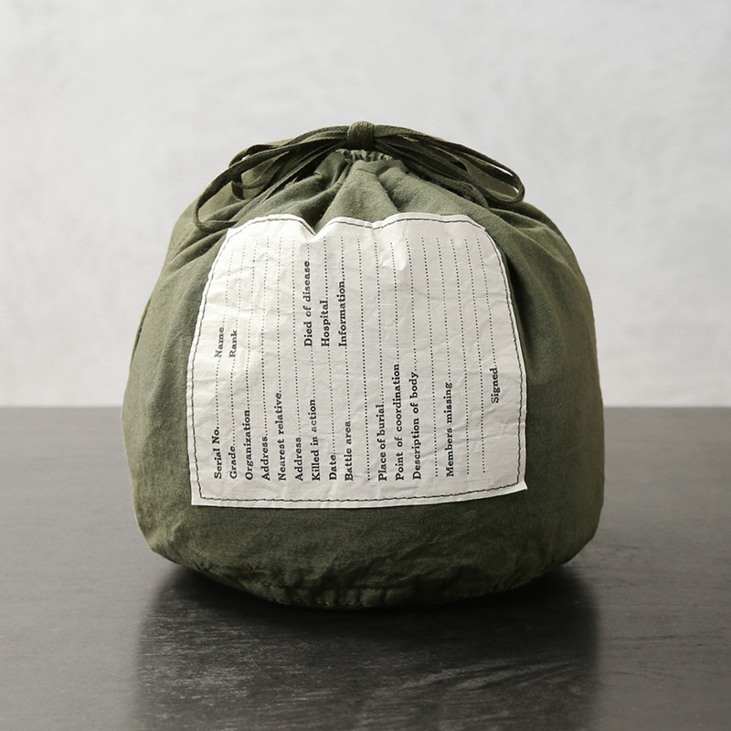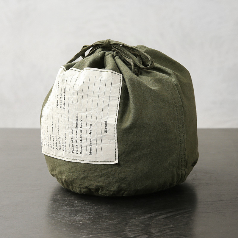 様々なブランドがサンプリングし、ファッションアイテムとしても人気の高い米軍エフェクツバッグデザイン。近年では放出が激減し、非常に希少価値が高まっているアイテム。USEDでも入荷が困難な状況です。元々は戦場での傷病者等を後送する際、身の回り品をまとめて運ぶ為に使用されていました。そのためフロントには誰の持ち物かすぐに判別できるように、所属や官姓名、移送先を記入するためのラベルが配置されています。深めのオリーブカラーに大きく配置されたホワイトのラベルは、まるでデザインの一部のようなバランスの良いアクセントになっています。ちょうどいいサイズ感なのでちょっとした外出時の財布やスマホを入れるのにぴったりです。