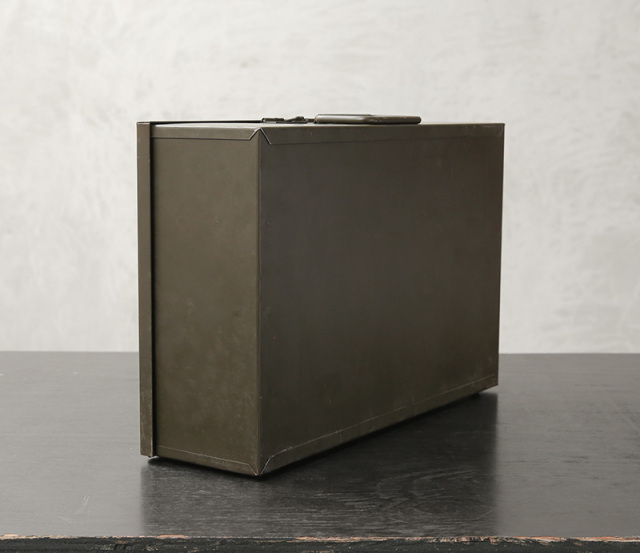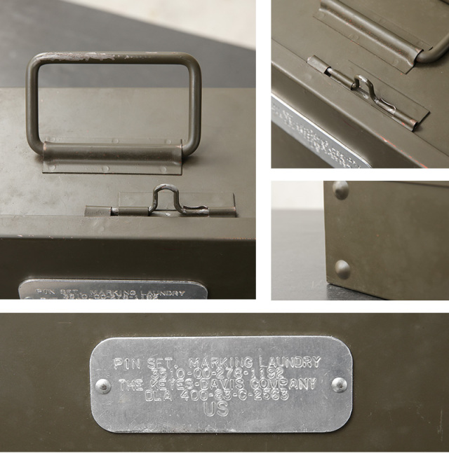 | 商品説明 | 実物 新品 デッドストック 米軍 1980~1990’s ヴィンテージ 真鍮製 ランドリーピン ケース付き フルセット KEYES DAVIS社製のご紹介です。 制式名称:PIN SET, MARKING LAUNDRY 米軍内で洗濯物を識別する為に使われていたセーフティピンの希少なケース付きフルセットが入荷しました。こちらはKEYES DAVIS社製造の個体で年代は1980年代~90年代ごろのものになります。 ピンは真鍮製で、その丈夫さから多くの兵士がキーホルダー代わりにしていたといわれるほど雰囲気の良い逸品。 分隊(10人くらいの陸軍での最小編成)ごとにナンバリングを変えて識別していたそうで、それぞれのピンには数字とアルファベットのエンボス加工が入っています。 アルミ製の格納ケースに20本のピンを1ブロックとして、24個のブロックが収められており、予備用の無刻印のピン50本も完備。また、アンモボックスのような丈夫さとミリタリーものらしい無骨な趣を兼ね備えた全体を収めるプレート付きスチールケースも非常に魅力的です。 ピンはストールやスカーフ留め、デニムやジャケット、帽子に付けてブローチ感覚で使用したり、束ねて簡易キーホルダーにするなど、シンプルですが、使い方次第で魅力が広がるアイテム。スチールケース自体もインテリアとして抜群の存在感を放ちます。 予備のピンまで完備したデッドストック状態でのケース付きフルセットは非常に珍しく、今ではほとんどお目にかかることもできない貴重なアイテムです。実用性も兼ね備えた、歴史を感じるコレクションの一部としてぜひ手に入れてみてはいかがでしょうか。 ※ピン、ブロック、ケースフルセットでの販売です。 |