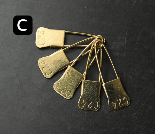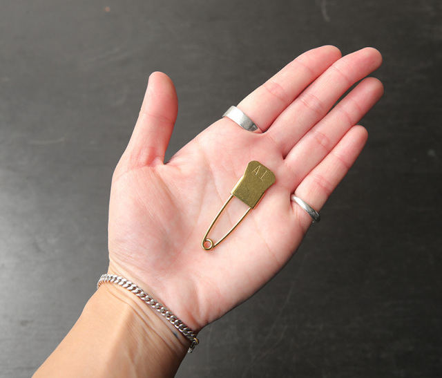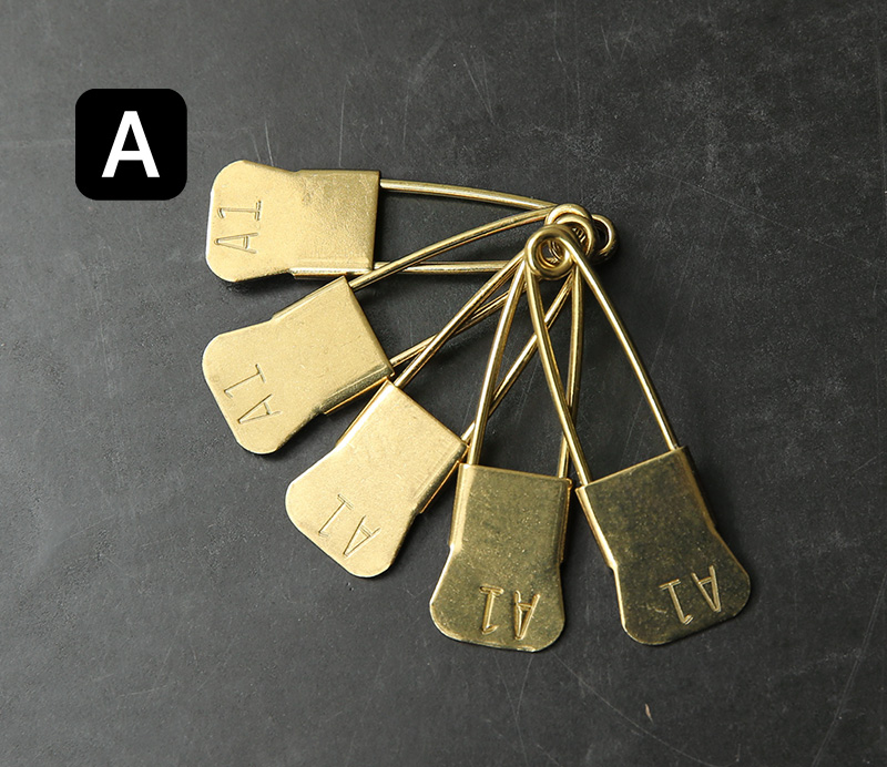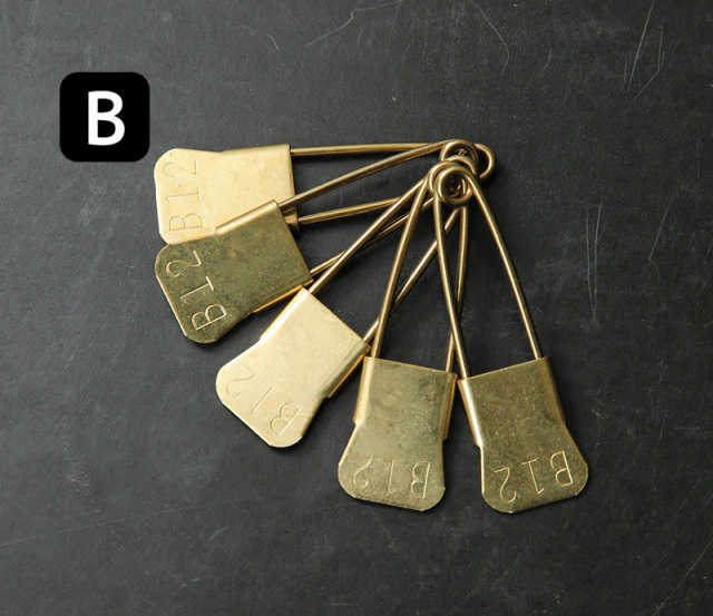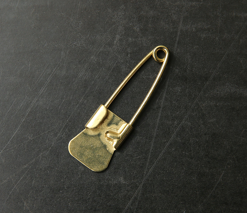 1970年代~1980年代頃米軍内で、洗濯物を識別する為に使われていたセーフティピンの5本セットが入荷しました。本来はアルミ製のケースに20本のピンを1ブロックとして、24個のブロックで収められている個別のピンになります。真鍮製で、その丈夫さから多くの兵士がキーホルダー代わりにしていたといわれるほど雰囲気の良い逸品です。ストールやスカーフ留め、デニムやジャケット、帽子に付けてブローチ感覚で使用したり、束ねて簡易キーホルダーにするなど、シンプルですが、使い方次第で魅力が広がるアイテム。真鍮製ならではの、使うほどに色味が深まり、独特の風合いもお楽しみいただけます。
