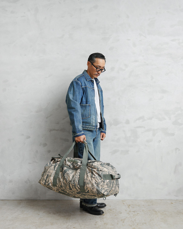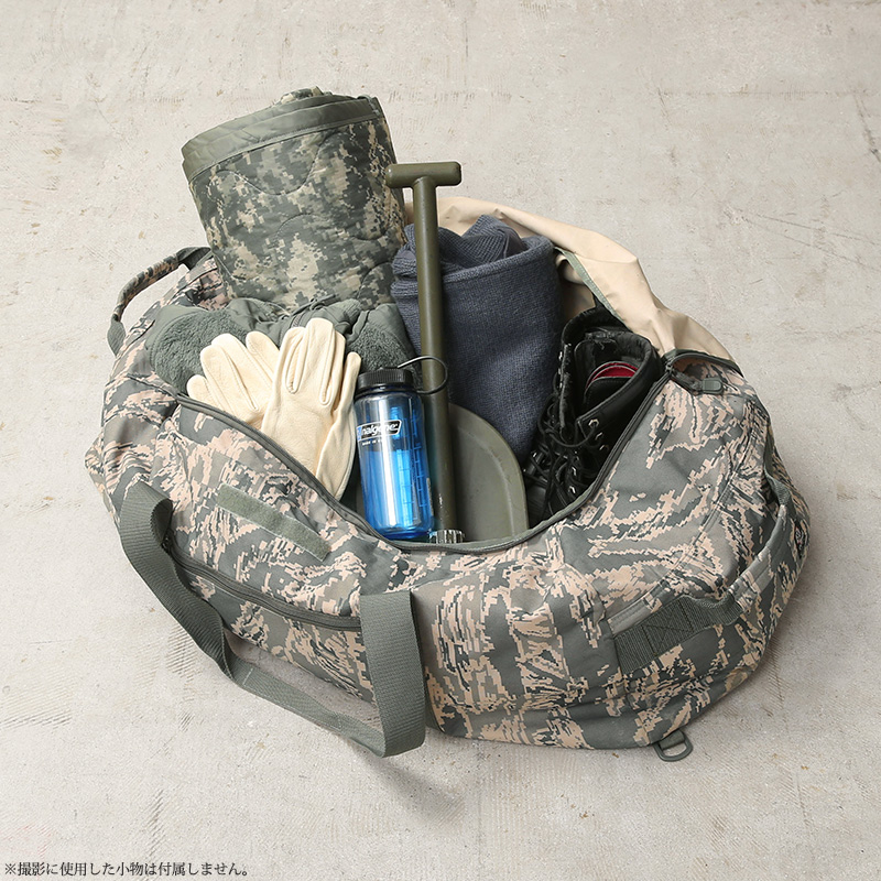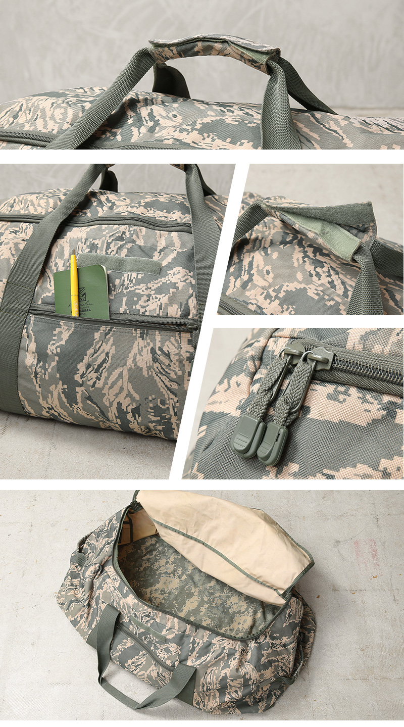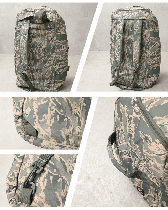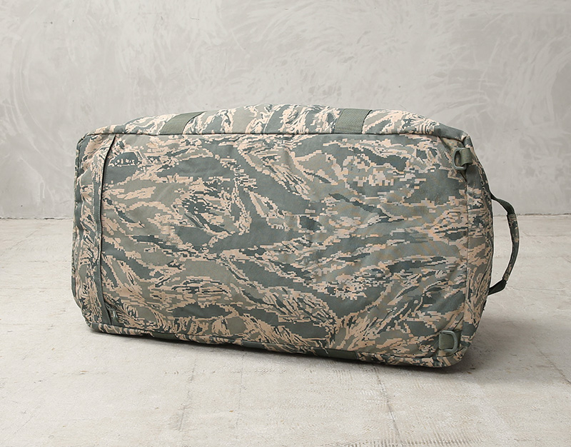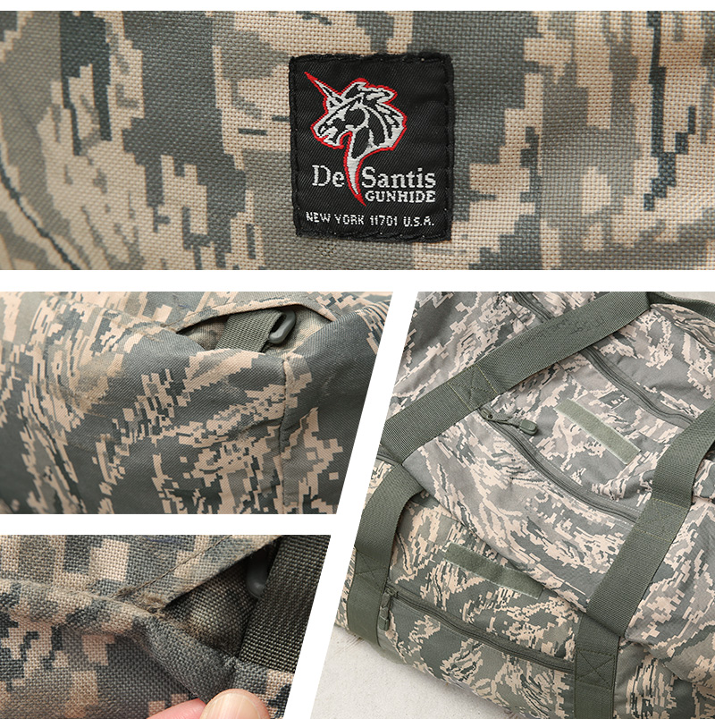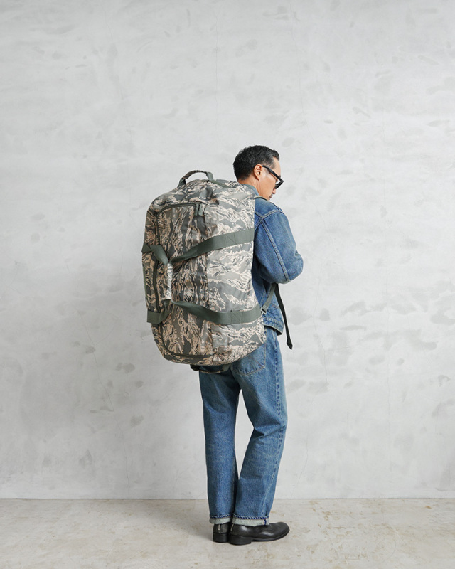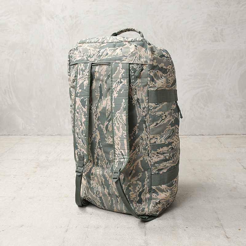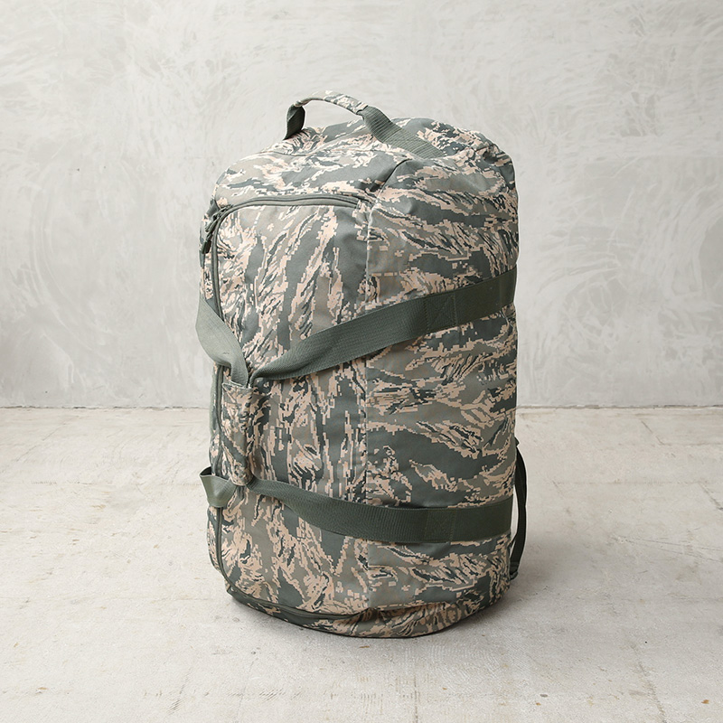 アメリカ合衆国ニューヨーク州ロングアイランドに拠点を置く、世界最大級のホルスターおよび銃器アクセサリーのメーカーであるDeSantis Gunhide社製の2WAYキャリーバッグ。 2007年より支給が開始、2021年まで採用されていたABU(Airman Battle Uniform)という迷彩柄で、U.S.AIR FORCE(米空軍)独自のデジタルタイガーストライプが特徴的です。NSN(National Stock Number)はありませんが、公式のABUパターンで米軍内でも使用されていたモデルと思われます。ミリタリーグレードの耐久性かつ軽量で、衣類、装備品などを十分に収納できる広々としたメインスペースに、ウェビングハンドルと、格納式のショルダーストラップを装備。バックパックとダッフルバッグ、両方の機能を備え、最大限に汎用性を発揮します。