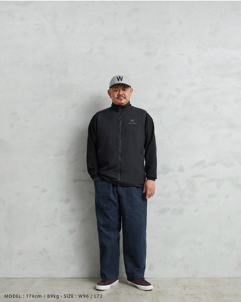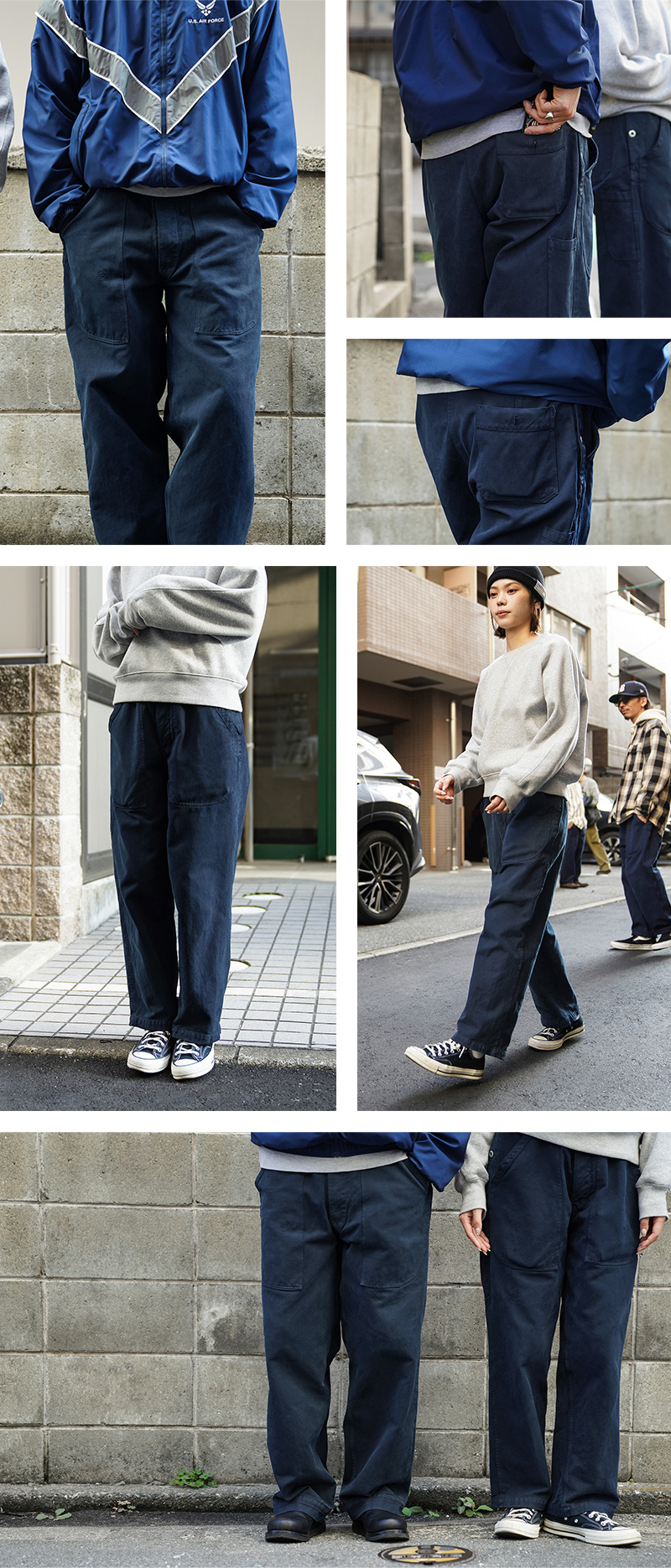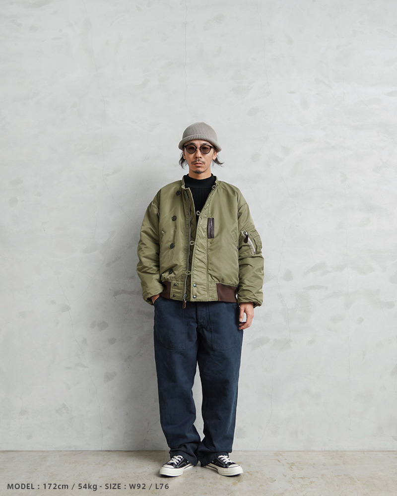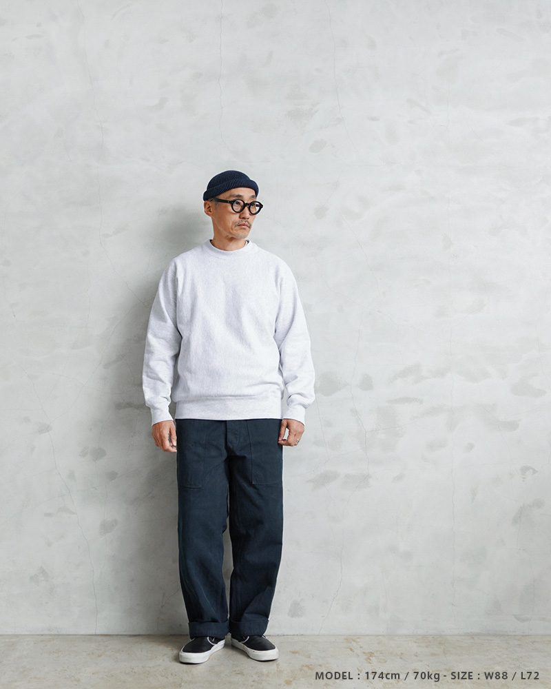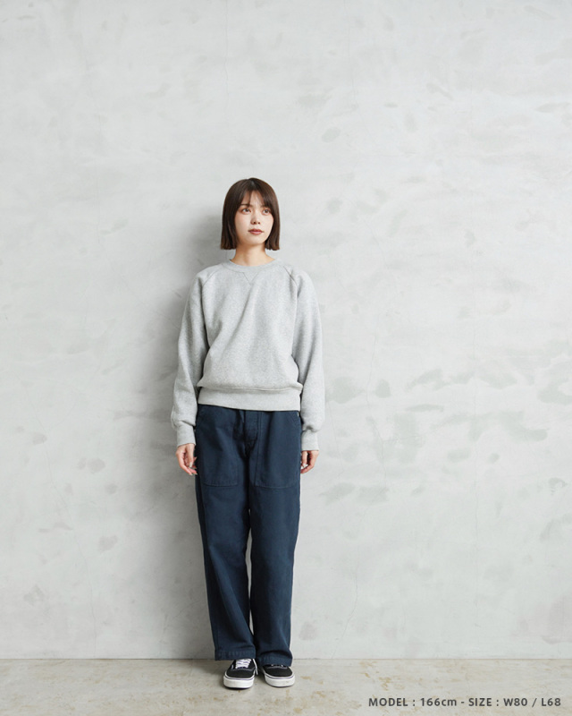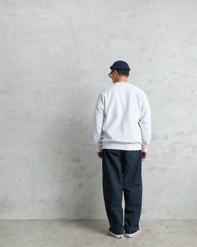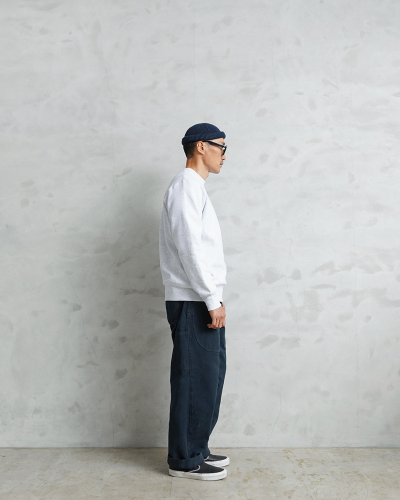 スイス軍のデニム素材のユニフォームは30年代ごろから存在が確認されており、こちらのタイプは主に1950年代以降から採用されていたものになります。年代によってボタンに違いがあり、こちらはアルミニウム製のボタンが採用された通称前期型となります。今回、この希少性が高いアイテムを国内で丁寧にNAVY染めを施しました。黒に近い締まり感がありつつ、重く見えないNAVY染めは本来のがっしりとした質感に、後染めの効果も加わり、非常に雰囲気のある仕上がりに。これからまた履き込むほどにアタリや色落ちが出て、経年変化が非常に楽しみなアイテムです。セットアップでユニフォームとして着用されるアイテムですが、使い勝手がよく堅牢なヘビーオンスのデニムは、脇にスケールポケットが備わっていることもあり、作業服や囚人服としても着用されていたと言われています。ゆったりとした太もも周りから裾にかけてやや細くなるキレイなテーパードシルエットは、様々なコーデにマッチするアイテムです。