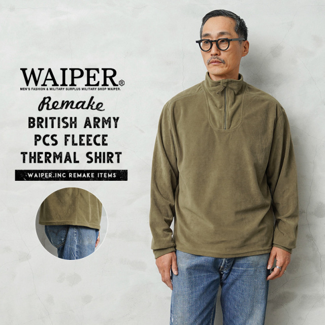 | 商品名 | WAIPER.inc 実物 イギリス軍 リメイク PCS フリース サーマルシャツ LIGHT OLIVE スクエアテール |
