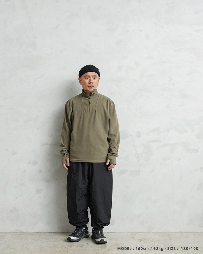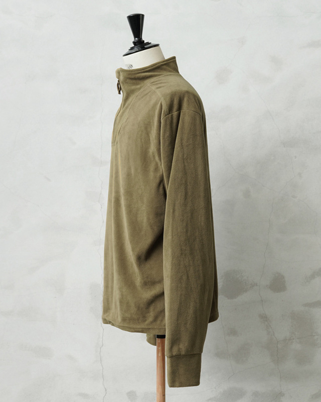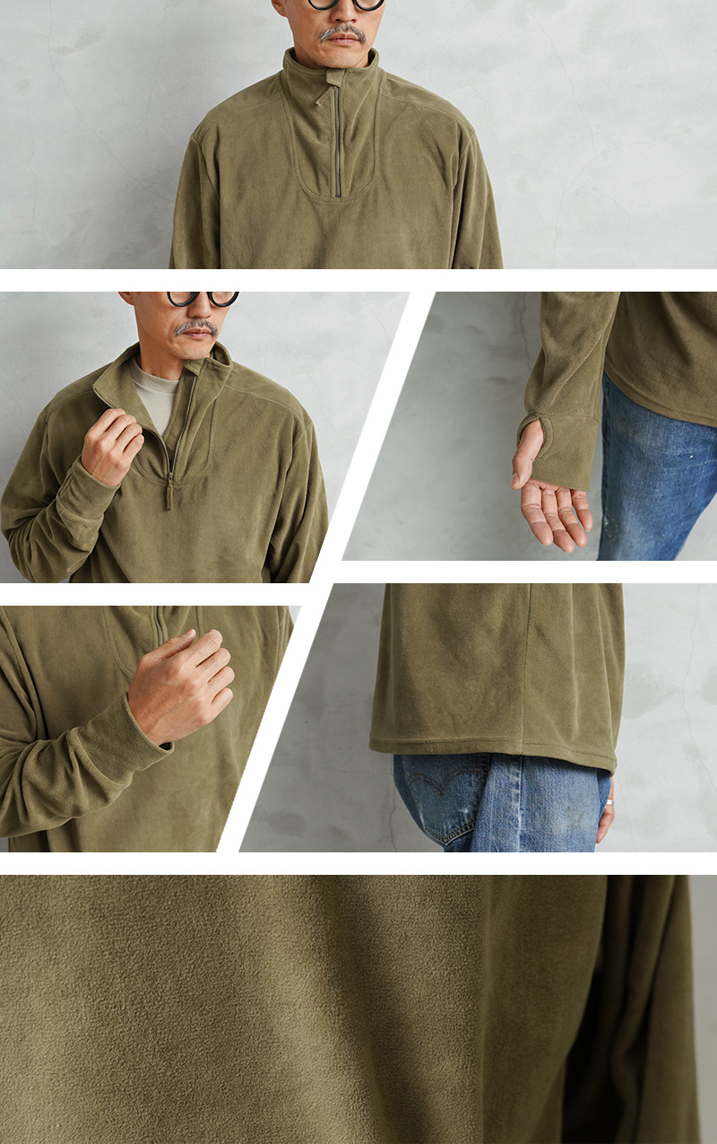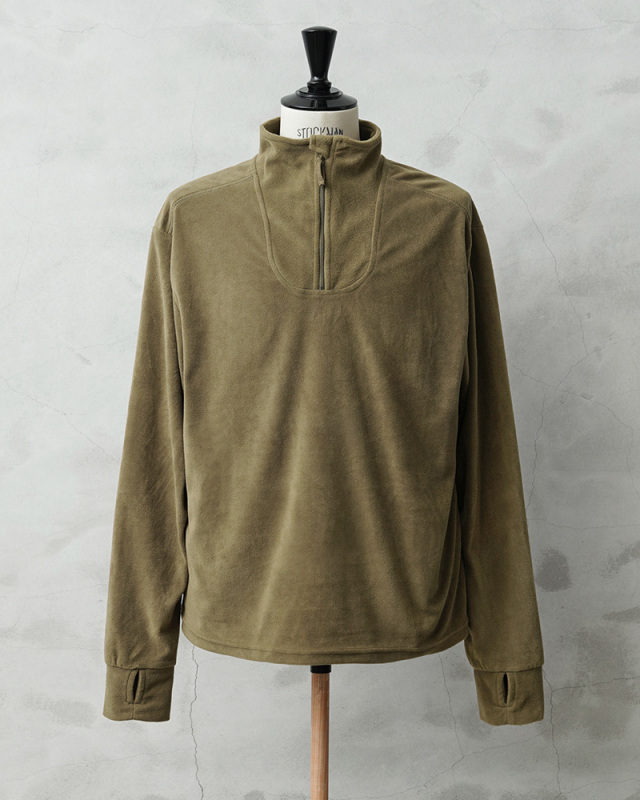 寒冷地向けに開発されたイギリス軍のレイヤリングシステム、PCS(Personal Clothing System)のアンダーシャツに属するアイテムです。NORGIE SHIRTS(ノルギーシャツ)の後継にあたります。前後に大きくラウンドしたロングテールデザインの裾をカットし、スクエアテールにすることでレイヤードや着回しをしやすいアイテムにリメイクを施しました。速乾性のマイクロフリースを採用したアンダーシャツで、高い保温性と、快適な着心地。首元はハーフジップで、着脱がしやすいようになっています。保温性を高めるスタンドカラーで、寒冷環境下におけるベースレイヤーからミッドレイヤーとして設計された軽量サーマルシャツです。非常に素晴らしいミリタリーウェアのさらに使いやすいリメイクです。