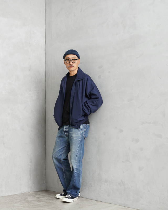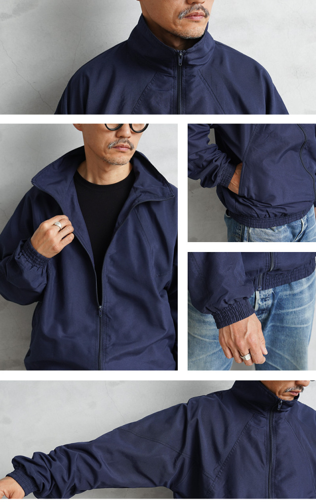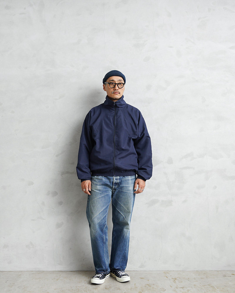 トレンド感のあるゆったりとしたシルエットと、レトロスポーティーなルックスが新鮮な実物放出のジップアップブルゾンが登場。肩周りはラグランと袖底にかけてセットインスリーブに切り替えられた変則的なスプリットラグランになっており、大きめのアームホールと肩の落ち感が程よいシルエット。さらに、そのラグランの切り替えを活かしたサイドのジッパー付きシームポケットなど他には見ないデザイン性に加え機能性にも優れた仕様です。表地はお手入れが楽なポリエステル×コットン、裏地にはガーゼのような柔らかく肌当たりの良い生地が付けられており着心地も抜群です。
