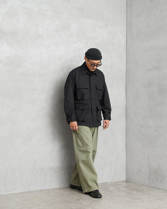 軍用製品のコントラクターによって製造されたBDUジャケットが登場。 長年デッドストックとして保管されていた未使用品で、実際に軍へ納入された官給品ではなく、一般販売向けに生産されたコマーシャルモデルとなります。MADE IN USAならではのしっかりとした作りも魅力です。 1981年より約30年以上にわたり全米軍で使用されたBATTLE DRESS UNIFORM(バトル ドレス ユニフォーム)は、BDUという略称で呼ばれる、米軍によって開発された戦闘服です。 現代の米軍の戦闘服として非常にメジャーなアイテムであると共に、BDUのアイテムは多くの国でも広く採用されていて、アメリカと関係の深い国では実物品をそのままアメリカから譲渡されて着用されていたとも言われています。こういったBDUのアイテムは派生として、米軍以外でも警察やSWAT、消防機関でもユニフォームとして活動を行う際に使用されていました。 引き裂きに強く軽量で耐久性に優れ、コットン100%ならではのやさしい肌触りを備えた、米軍開発のリップストップ生地を使用。4つのフラップポケット、左胸ポケット内のペンホルダー、肘の二重補強など実用的なディテールが随所に見られます。中期型ならではの外マチポケットや小ぶりな襟、細めの袖口タブ、ウエスト部分の調節用のアジャスターが特徴です。 現在でも様々なメーカーやブランドが製造しているBDUジャケットですが、米国製かつ実物が使用されていたころと同じ年代のコマーシャルモデルは、なかなかお目にかかることのできない貴重なデッドストックアイテム。この機会をぜひお見逃しなく! MADE IN USA |