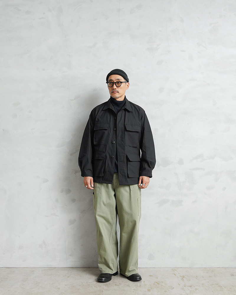 軍用製品のコントラクターによって製造されたBDUジャケットが登場。長年デッドストックとして保管されていた未使用品で、実際に軍へ納入された官給品ではなく、一般販売向けに生産されたコマーシャルモデルとなります。MADE IN USAならではのしっかりとした作りも魅力です。引き裂きに強く軽量で耐久性に優れ、コットン100%ならではのやさしい肌触りを備えた、米軍開発のリップストップ生地を使用。