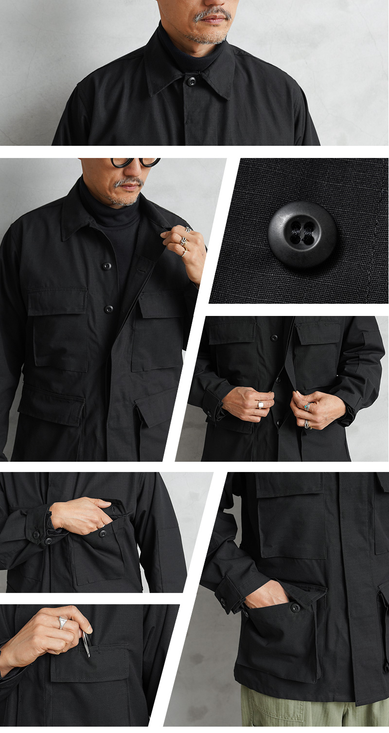 | 商品名 | MADE IN USA 新品 米軍 BDU ジャケット 中期型タイプ リップストップ BLACK | ||||||||||||||||||||
