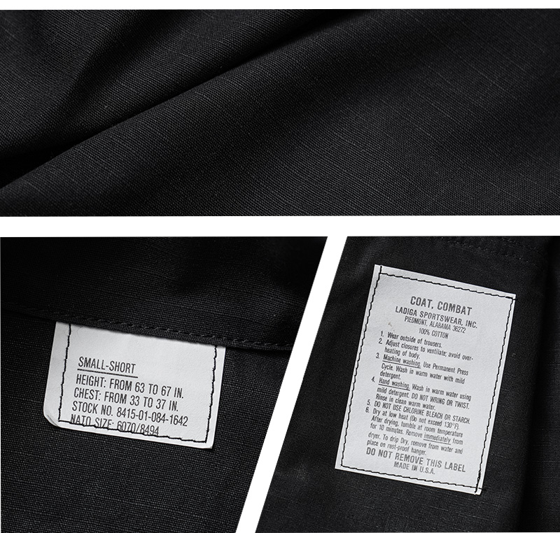 ※様々なコントラクターが製造したデッドストック品のため、タグやラベルのデザインや表記は異なり、マーカーなどで文字が消されている場合もございます。実物を製造していた米軍納入業者が工場を稼働させるため、コマーシャルモデルを作る際に、実物のウッドランドのBDUジャケットやパンツなどのタグやラベルを使用している場合があり、自国製造の納入品と同じ工場で製造されているためにMADE IN USAという記載をしています。