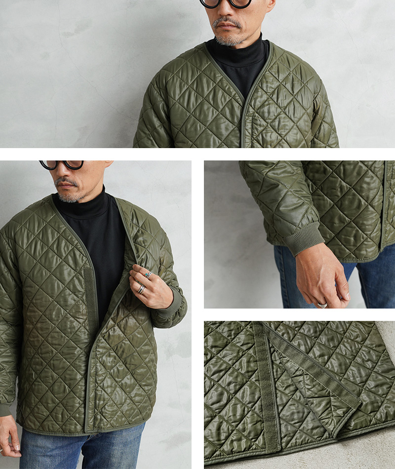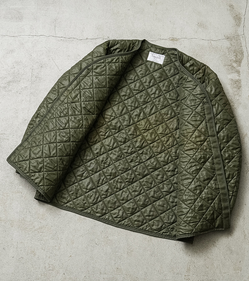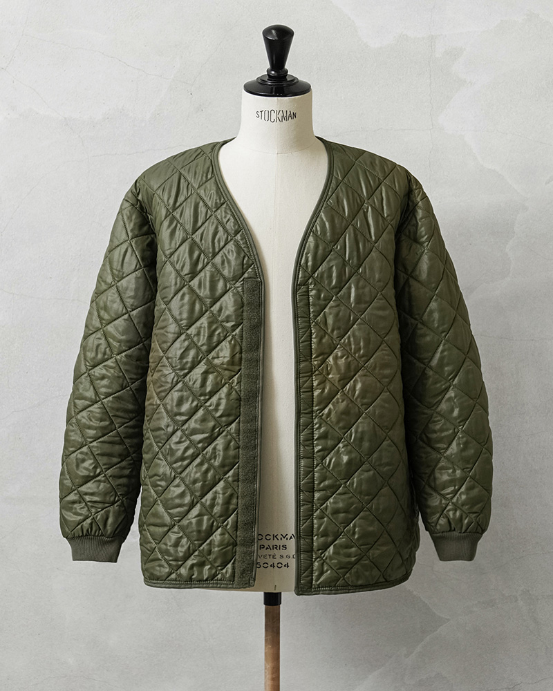 ベルギー軍で1980~90年代に使用されていたキルティング ライナージャケットが入荷しました。フィールドコートなどの内側に着用することで防寒性能を高めるアイテムですが、袖はリブ付きで中綿入りの仕様ですので、単体で着用してもシンプルでファッション性の高い着こなしのできる一着です。ナイロンのキルティングは保温性にも優れており、アウターとしてはもちろん、真冬にはジャケットのインナーとしてもレイヤードして防寒性を高める機能的なアイテムです。
