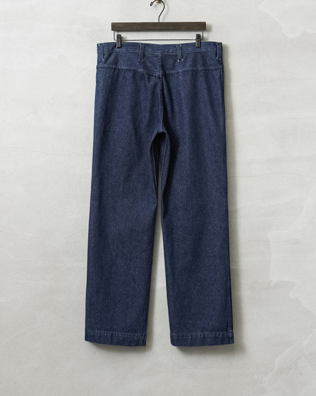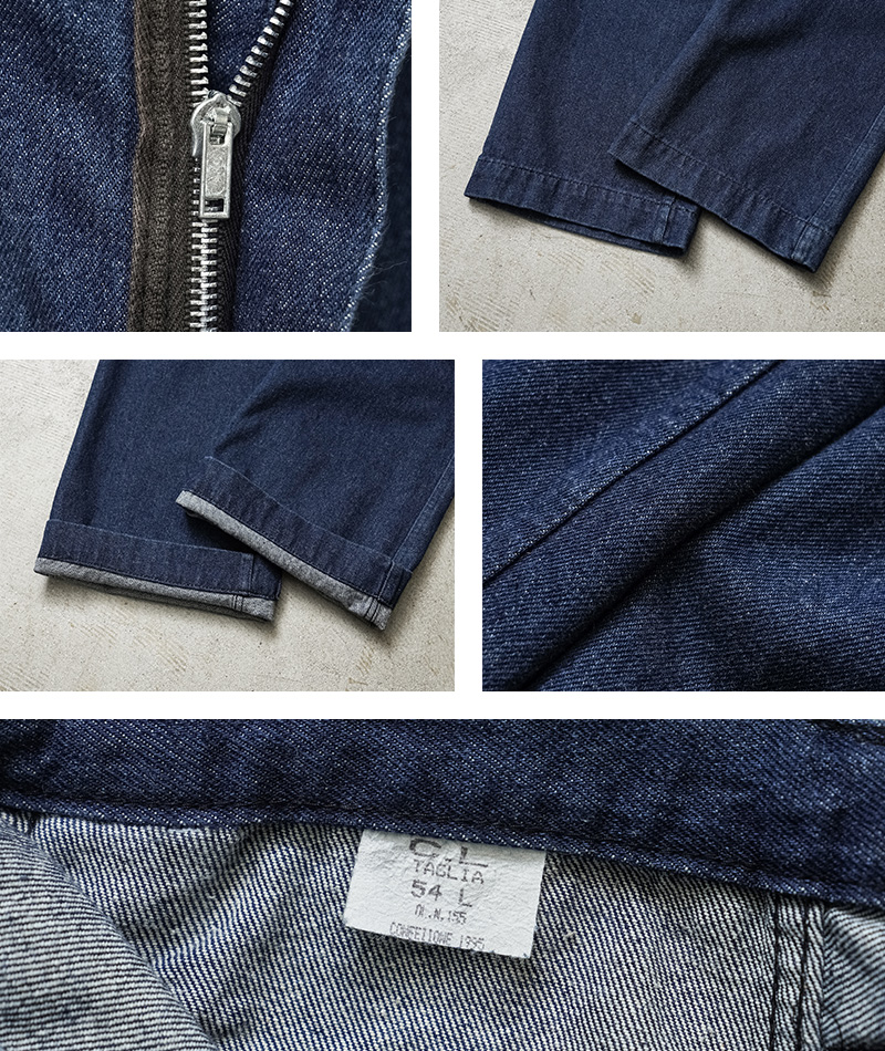 イタリア軍より放出された、デニム製のワークパンツが入荷しました。バックポケットが付属していない非常に珍しいデザインで、同系色の糸を用いたステッチワークにより、カジュアルな印象を抑え、様々なコーディネートに馴染みやすい点も特徴です。ゆったりとしたストレートシルエットで、野暮ったさを感じさせないデザインはイタリア軍ならでは。シンプルなデザイン故にデイリーユースにも取り入れやすく、履き込めば履き込んだ分だけ風合いの増す一本です。大変希少で市場に出回る事が中々無いレアなパンツです。