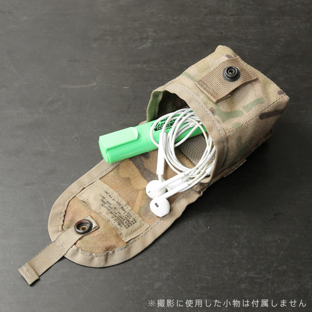 米軍から放出されたMOLLEシステム対応のグレネードポーチです。迷彩には、2000年代以降に米軍が本格採用したMULTICAMパターンを使用。多様な地形や環境に対応するために開発されたこの迷彩は、高い汎用性を誇り、実用性の高さから現在では米軍装備を代表するパターンのひとつとして知られています。耐久性に優れたナイロン素材を使用し、日常使いからアウトドア、タウンユースまで幅広く対応。フラップはスナップボタン仕様で、中身をしっかりと保護しながらスムーズな開閉が可能です。背面はMOLLE対応となっており、ベストやバッグ、ベルトなどさまざまなアイテムに取り付けができます。