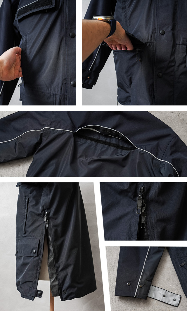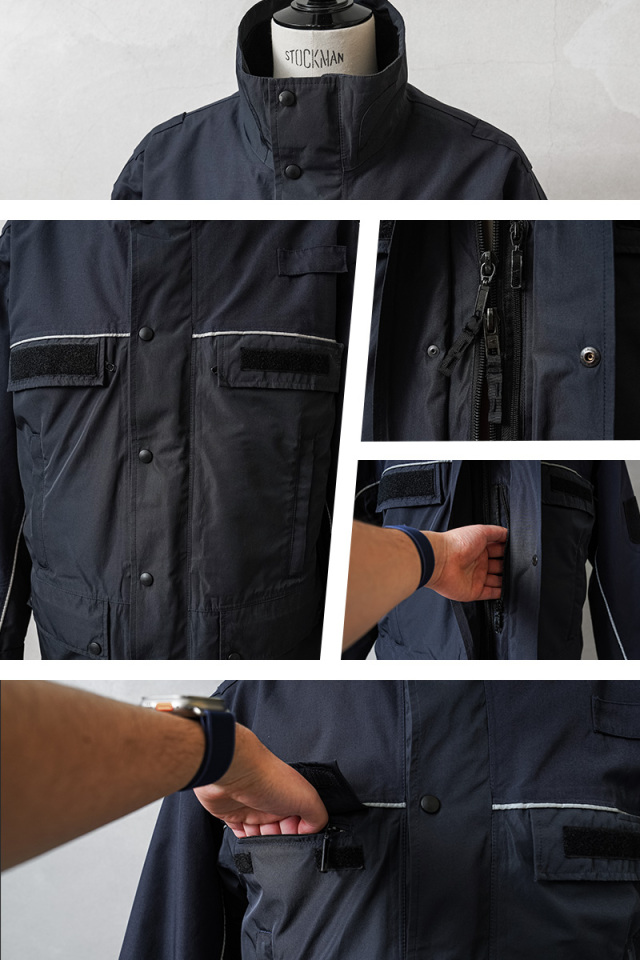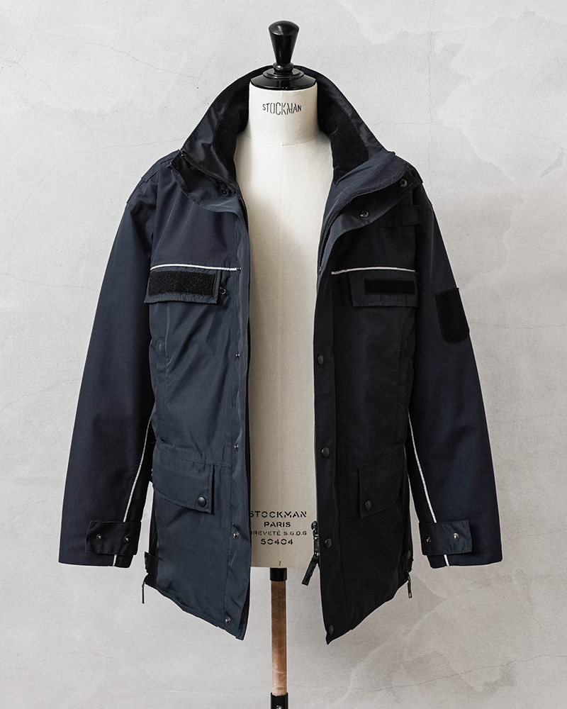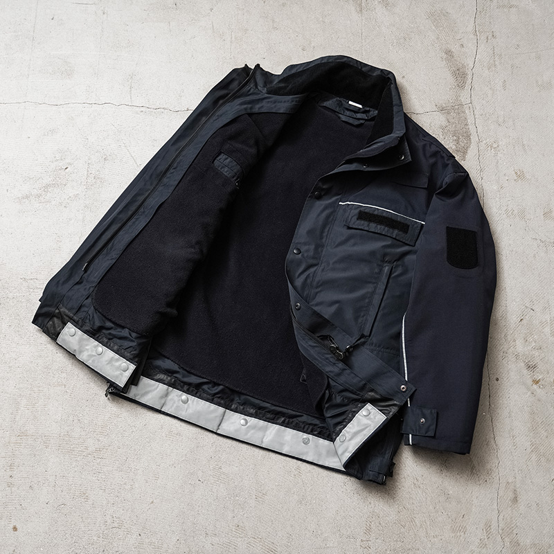 ドイツの警察、連邦警察、税関、そしてドイツ連邦軍(Bundeswehr)に制服などを供給する大手メーカーZiegler Textil GmbH社製の機能性ジャケットが登場しました。 フロントはダブルジップとボタンで開閉するデザインで、メインファスナーを開けずに小物の出し入れが可能なナポレオンジッパーポケット付き。前立てにはベルクロフラップ付きのジップポケット、縦ジッパーポケット、ボタンフラップ付きジップポケットが両側にあり、両サイド内側にスリットポケット、シェルとライナーそれぞれ左腰部分に携帯や小物収納に便利なフラップポケット付きで抜群の収納力を誇ります。 シェルは、強度、軽量性、耐摩耗性、速乾性に優れたポリエステルの表地にポリアミドのラミネート層で、軍や警察などのそれぞれの役職を表す肩章取り付け可能なベルクロ、視認性を高めてくれる袖口や裾部分のリフレクター、胸、袖、背面のリフレクターラインがポイント。フリースライナーは、ジッパーで簡単に取り外し可能になっています。 詳しくはわかりませんが、ウエストにあるピストルや警棒を取りやすくし、大きな動きにも対応するジッパー式のサイドベンツがあり、警察ならではの仕様であることが窺えます。 高い防寒性、防風性もさることながら、多彩なポケットの多さはバッグを持たなくも通用するほどの利便性。デイリー使いはもちろん、アウトドアやスポーツなどの際にも活躍する一着です。 |