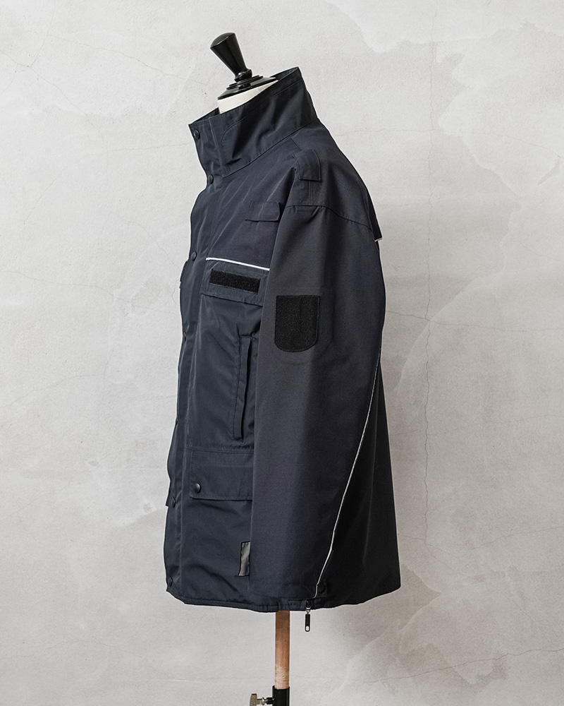 ドイツの警察、連邦警察、税関、そしてドイツ連邦軍(Bundeswehr)に制服などを供給する大手メーカーZiegler Textil GmbH社製の機能性ジャケットが登場しました。フロントはダブルジップとボタンで開閉するデザインで、メインファスナーを開けずに小物の出し入れが可能なナポレオンジッパーポケット付き。前立てにはベルクロフラップ付きのジップポケット、縦ジッパーポケット、ボタンフラップ付きジップポケットが両側にあり、両サイド内側にスリットポケット、シェルとライナーそれぞれ左腰部分に携帯や小物収納に便利なフラップポケット付きで抜群の収納力を誇ります。