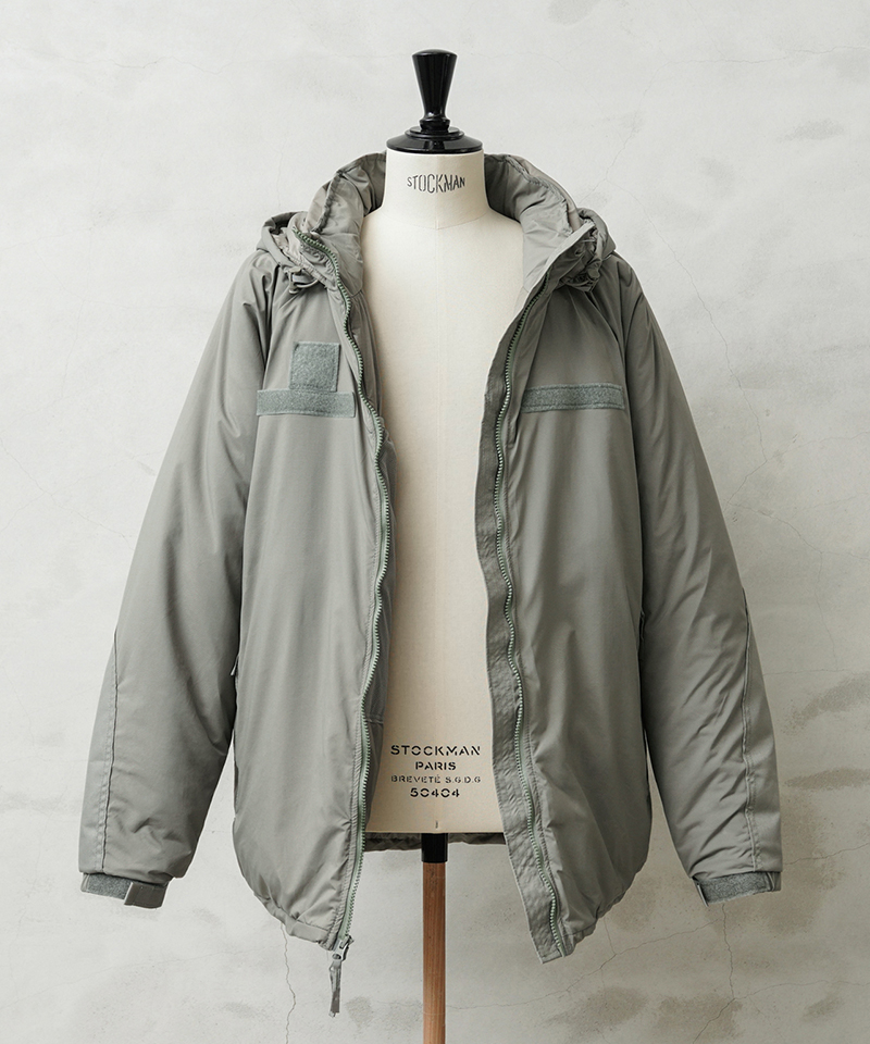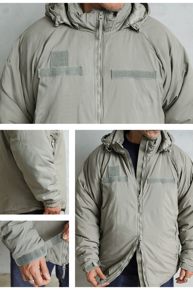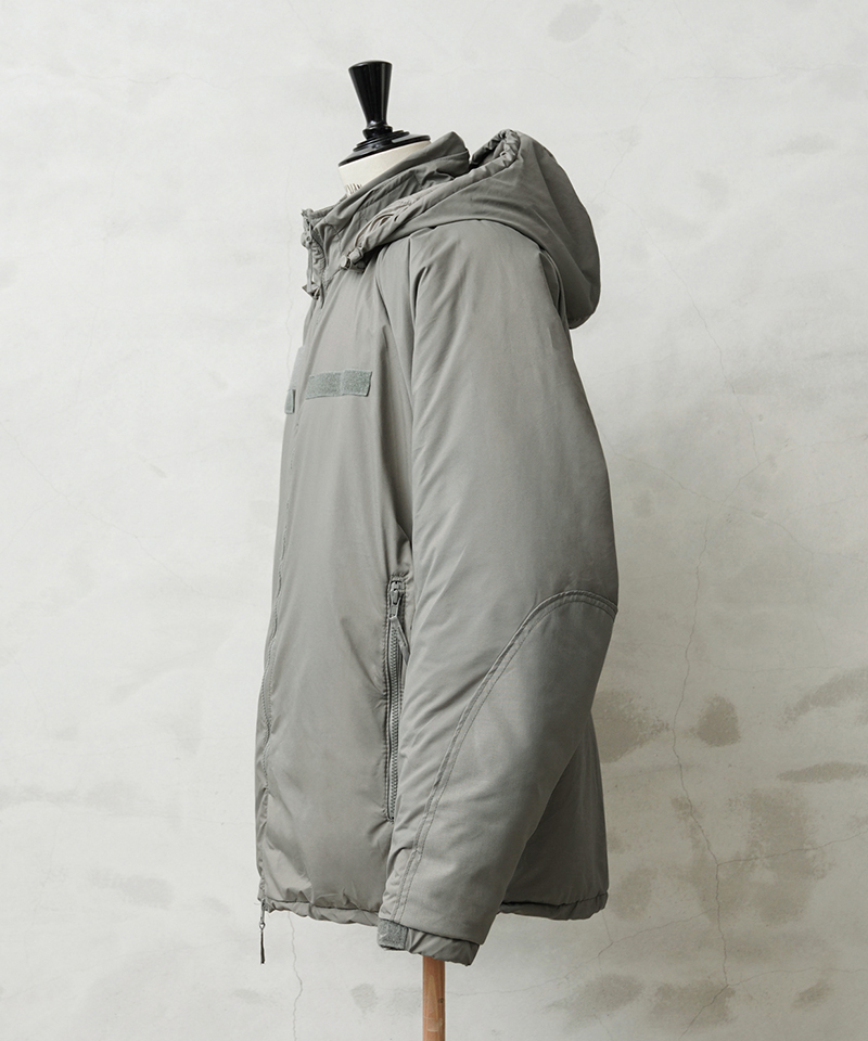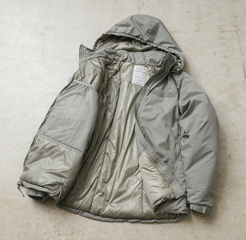 定番ミリタリーアウターとして絶大な人気を誇る米軍のECWCS GEN III LEVEL7 ジャケット。今回、米軍に長年納入実績のあるTENNIER INDUSTRIES社、2019年会計年度契約のClimashield APEXモデルが希少な実物デッドストックコンディションで入荷致しました。 米軍 ECWCS 第三世代(ジェネレーション3)は7種類のトップスと5種類のボトムから構成された、様々な気候やシチュエーションに対応するレイヤリングシステムです。LEVEL7はレイヤリング最終防寒アウターとして位置づけられており、収納式のフードや、フロントのベルクロデザイン、ポケット内蔵の裾ドローコードやエルボーパッチなどのディテールが特徴です。