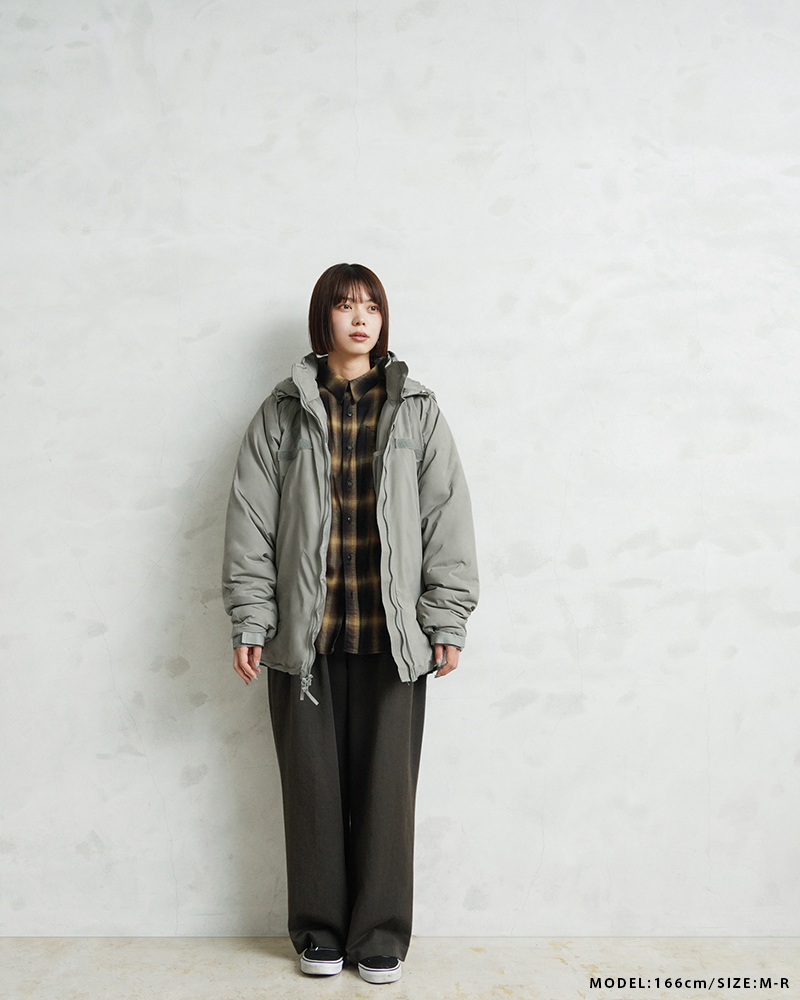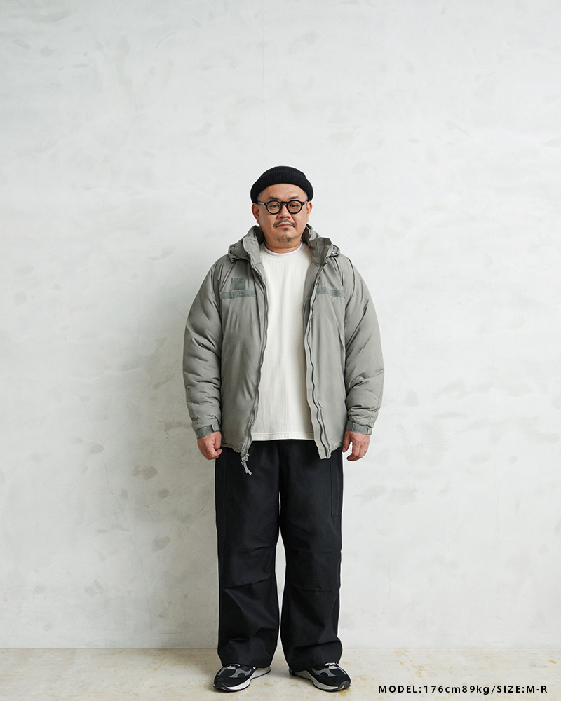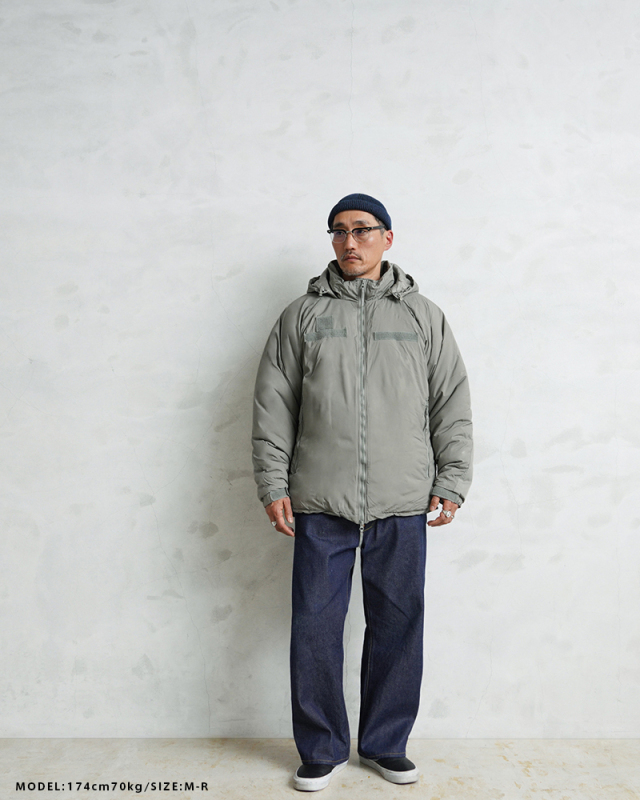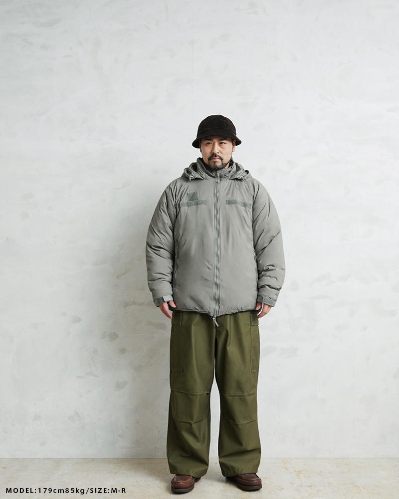 | 商品説明 | 実物 新品 デッドストック 米軍 TENNIER INDUSTRIES社製 ECWCS GEN III LEVEL 7 ジャケット Climashield APEXのご紹介です。 URBAN GRAY,GENIII,LAYER 7,PARKA,ECWCS,LOFT NSN:8415-01-538-6289 CONTRACT:SPE1C1-19-D-1155 SUBCONTRACT:SPE1C120F1806 LOT NO. 86 定番ミリタリーアウターとして絶大な人気を誇る米軍のECWCS GEN III LEVEL7 ジャケット。今回、米軍に長年納入実績のあるTENNIER INDUSTRIES社、2019年会計年度契約のClimashield APEXモデルが希少な実物デッドストックコンディションで入荷致しました。 米軍 ECWCS 第三世代(ジェネレーション3)は7種類のトップスと5種類のボトムから構成された、様々な気候やシチュエーションに対応するレイヤリングシステムです。LEVEL7はレイヤリング最終防寒アウターとして位置づけられており、収納式のフードや、フロントのベルクロデザイン、ポケット内蔵の裾ドローコードやエルボーパッチなどのディテールが特徴です。 表地にはプレーンウィーブナイロンを使用。高密度に織られることで表地には撥水性も備えています。また、中綿素材には従来のモデルで採用されていたPrimaloftに対し、米国Harvest Consumer Insulation社のClimashield APEXを採用しています。 1平方ヤードで6ozとロフトの高い中綿を使用しており、軽量でありながら優れた保温性を実現した非常に頼もしいクオリティー。透湿性、速乾性、耐久性を持ち合わせており、濡れても高い保温性を保ちます。 フードは襟に収納可能で、肘は補強されています。フロントはダブルジッパー仕様で、ジッパー開閉のサイドポケット内には裾を絞れるドローコード付き。メッシュ素材のインナーポケットや袖先はベルクロで調節可能なシンプルで洗練されたディテールです。 機能性とデザイン性を兼ね備えた一着をお探しの方に、ぜひおすすめしたい逸品。希少性も非常に高い入荷ですのでこの機会をお見逃しなく! ※袋に入ったまま長期保管されていたためシワがございます。ハンガーなどにかけ、着用を重ねるほどにシワは軽減されていきます。 ※検品のため袋を開封しております。袋に関しましてはポケットに収納して発送させていただきますが、付属しない場合もございます。 ※画像のフロントジッパー取付の紙フラッシャーは付属しない場合がございます。 ※襟部分フード収納用ベルクロ部分にうっすらと点のマーキングがある場合がございますが、生産時につけられたマーキングとなります。 |