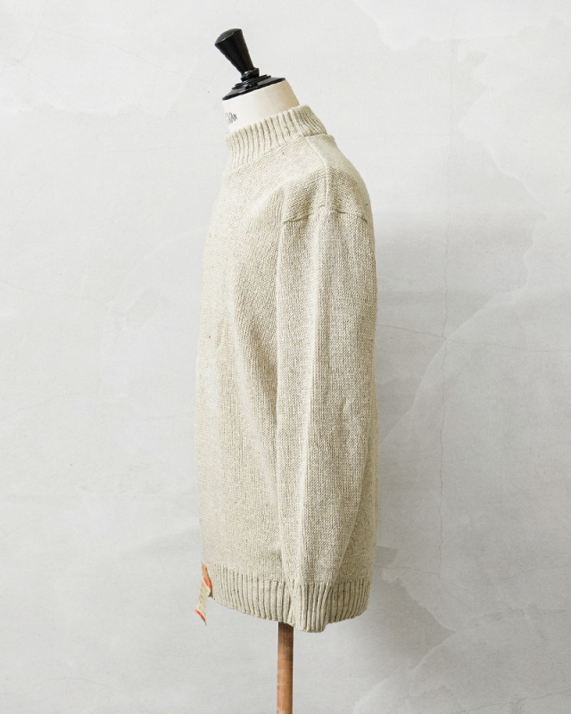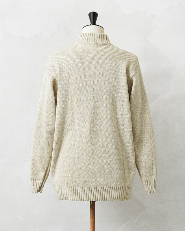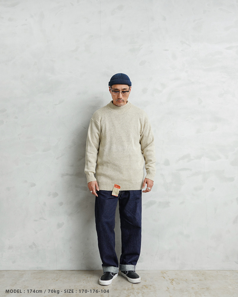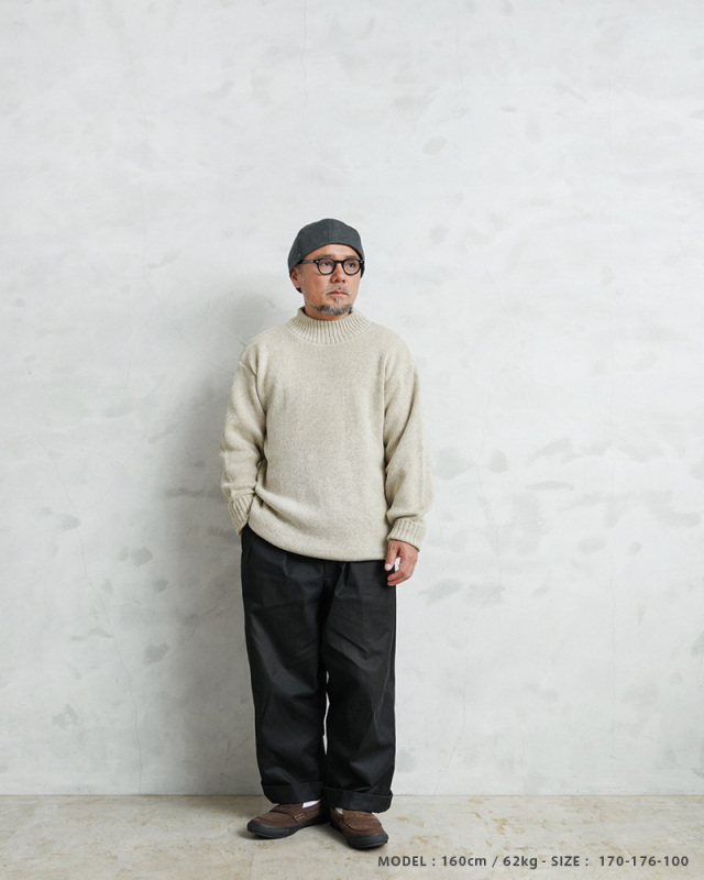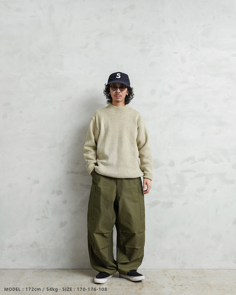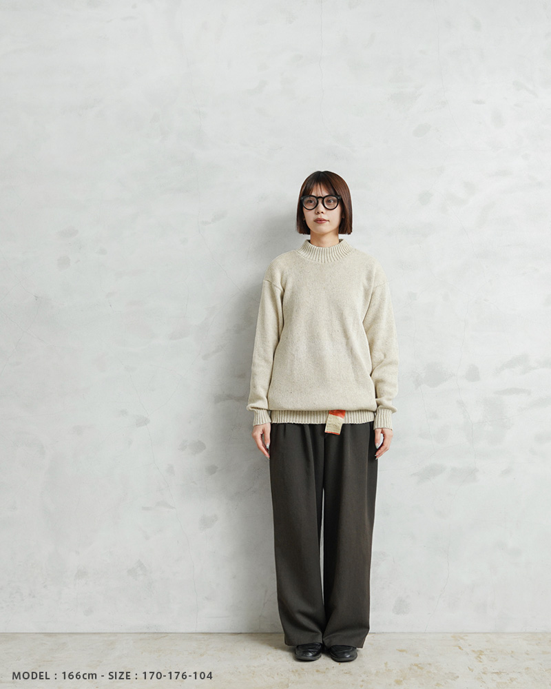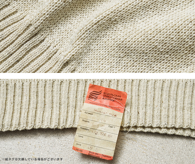 旧ソ連からロシア連邦へ移行していく、激動の時代に製造されたウールニットセーターです。シンプルなモックネック仕様で、首元に適度にフィットして保温性を高めます。コマンドセーターのような肩のエポレットや、エルボーパッチなどは付属しない実用性を重視したシンプルな作りが特徴です。無駄を削ぎ落としたプレーンなデザインがファッションアイテムとして活躍します。目の詰まったミドルゲージニットで防寒性は抜群。モックネックの首元がすっきりとしたキレイめな印象を与え、ジャケットのインナーとしてもビジネスからカジュアルまで幅広く着回せます。