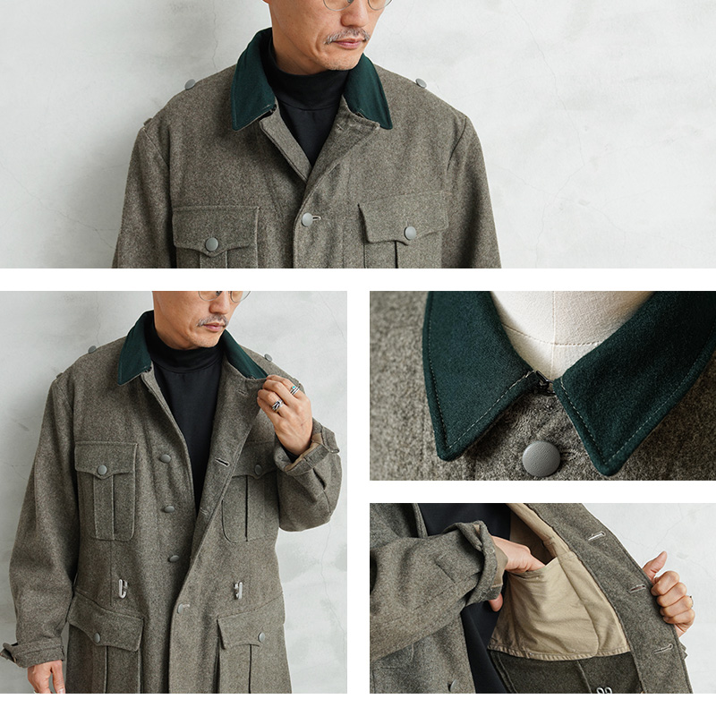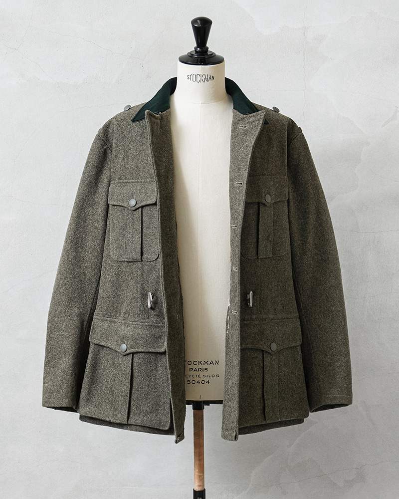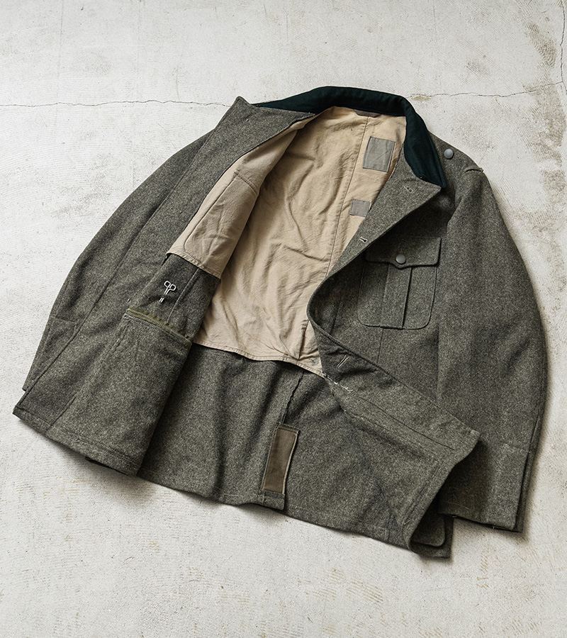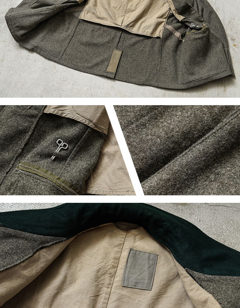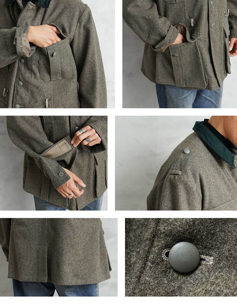 ヨーロッパでリメイクが施された後に当店へ入荷した、かなり珍しいリメイクアイテムが入荷しました!実物の「スウェーデン軍M-39ウールジャケット」などを使用し、第二次世界大戦以前からドイツ軍で採用されていた「ドイツ軍M-36フィールドジャケット」にリプロダクトされたジャケットです。ドイツ軍M-36フィールドジャケットはドイツ軍のアイテムの中でも特に人気の高いアイテムで、実物であれば数十万円単位で販売されるような高額な商品ですが、ヴィンテージのスウェーデン軍M-39ウールジャケットを使用することで、リアルな年代物の素材感や雰囲気で再現されています。