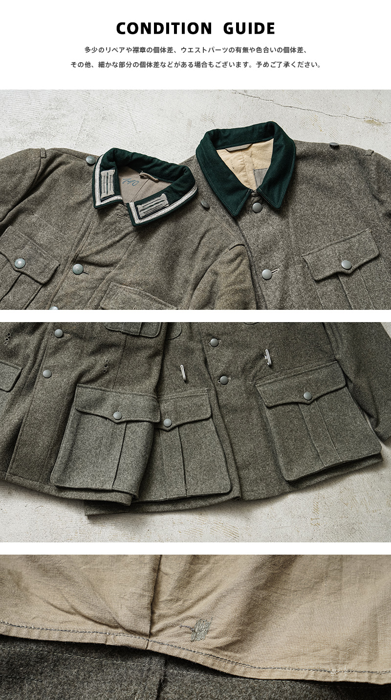 ※USED品を使用したリメイクの為、多少の汚れやほつれ、マーキングなどがある場合がございます。また、多少のリペアや襟章の個体差、ウエストパーツの有無や色合いの個体差、その他、細かな部分の個体差などがある場合もございます。予めご了承ください。商品の状態についてご指定いただくことは出来ませんので予めご了承ください。