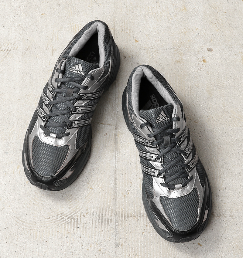 ドイツ軍にトレーニング用に支給されていたadidas社製スニーカー。ドイツのバイエルン州に本社を置く世界的スポーツブランドadidas(アディダス)なので、納得の採用です。2000年~2010年代に製造された比較的近代のモデルで、日常のウォーキングや軽いランニング、フィットネス向けに設計されたエントリーモデルのランニングシューズ。深いフォリッジグレーのメッシュアッパーとメタリックなシルバーラインが未来的なデザイン。サイドには象徴的な三本ラインがポイントになっています。