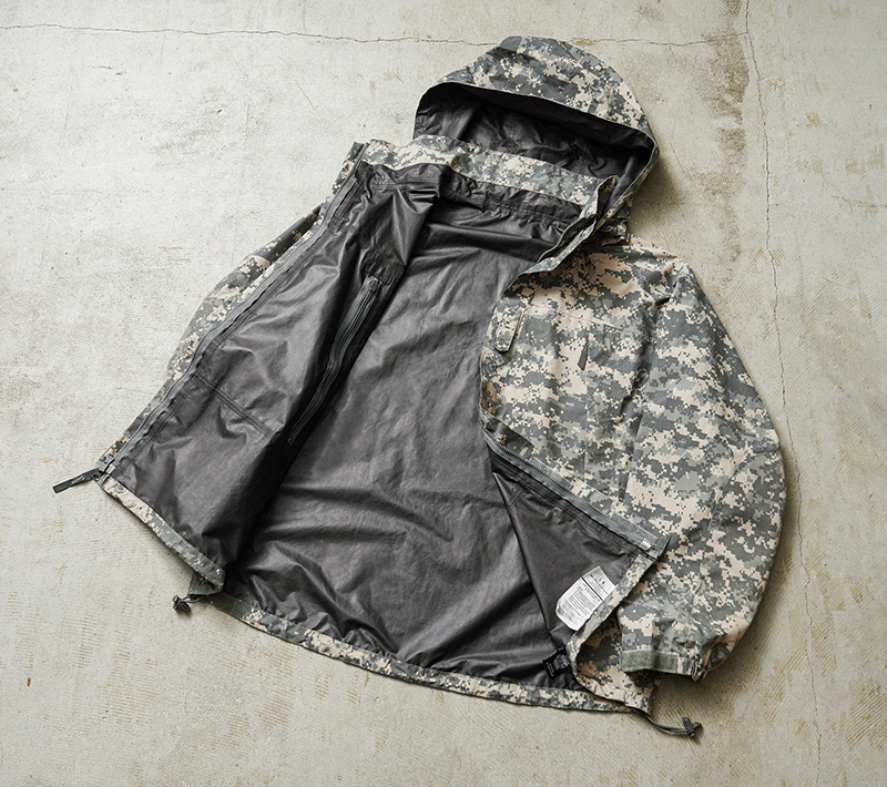 | 商品説明 | 実物 USED 米軍 ECWCS GEN3 LEVEL6 GORE-TEX ジャケット ACU(UCP)のご紹介です。 制式名称:JACKET,EXTREME COLD/WET WEATHER(GEN III)UCP 米軍より放出されることの少ないLEVEL6 GORE-TEX ジャケットが入荷しました! LEVEL6はGORE-TEXが使用されたハードシェルとパンツという事で、滅多に手にすることができないアイテムです。 ECWCS(EXTENDED COLD WEATHER CLOTHING SYSTEM)は1986年に米軍が制式採用した拡張式寒冷地被服システムと呼ばれるレイヤリングシステムです。1990年代には第2世代(GEN2)が登場し、2000年代には第3世代(GEN3)が登場しました。GEN3は7種類のトップスと5種類のボトムから構成されています。 このLEVEL6はGORE-TEX素材を使用した、EXTREME COLD WEATHER(極寒/雨など湿った気候)に対応した完全防水のシェルジャケットです。生地は防風・防水でリップストップのGORE-TEX PACLITEを使用し、軽量で比較的コンパクトに収納することも可能です。ジャケットの襟はフードが収納でき、胸元のジッパーは貫通式のベンチレーションになっています。 PACLITEは従来のドットをなくすことで10%の軽量化、40%薄くなり進化したGORE-TEX。微少ドットが防水層へのダメージを抑え、スベリが良くなるのも特徴です。単体での着用はもちろん、LEVEL3のフリースやLEVEL7のアウターで防寒性を高めたり、組み合わせで様々な環境でレイヤリングができます。 コンパクトに収納できるので携帯するのに便利な為、レインウェアや軽量性を重視したアイテムに使われてます。高機能素材が使用された米軍のレアアイテムです。 |