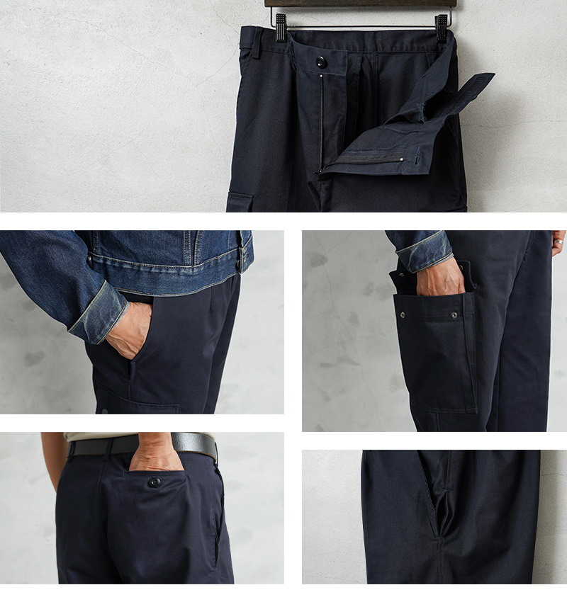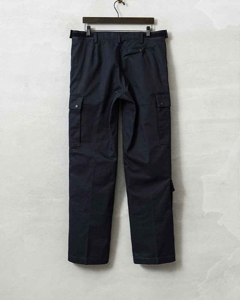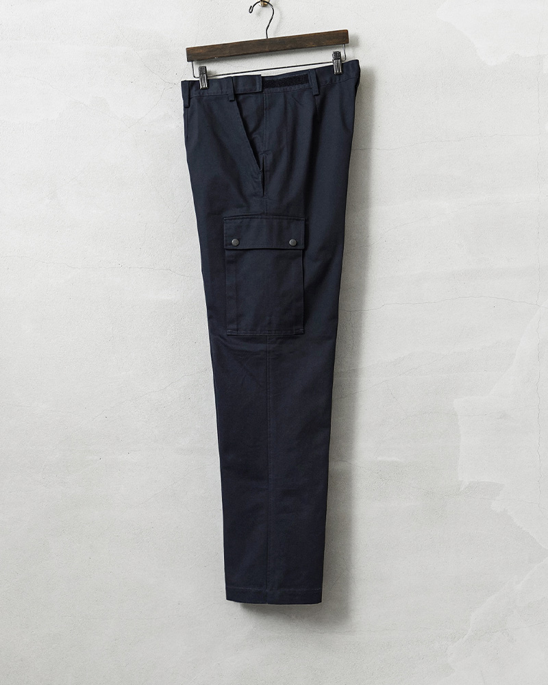 1998年にオランダ陸軍から独立し、オランダ4番目の軍種となった、オランダ王立保安隊(KMar:Koninklijke Marechaussee)は、オランダ国防省管轄下にある国家憲兵組織です。憲兵であると同時に、平時には警備を中心とした警察任務を担っています。 深みのあるネイビーのカーゴパンツで、未使用デッドストックでの入荷です!そして、右足の裾に配置されたポケット(通称ナイフポケット)がアシンメトリーとなり、なぜかバランスがいいんです! ややコンパクトなカーゴポケットに、バックポケットは右側に1つデザインされています。両サイドのスラッシュポケットの下部分には警棒などを収納するため30cm程の深さのある小型ポケットも付属しています。 ウエストサイドはベルクロで幅が最小~最大までかなりの幅を調整可能なので、ウエストサイズがベルクロによって、ウエスト最大サイズから約20cm幅を絞れます。なかなか珍しい仕様だと思います! バランスが良く、太すぎないシルエットの綺麗なカーゴパンツで、入荷自体難しいアイテムです。