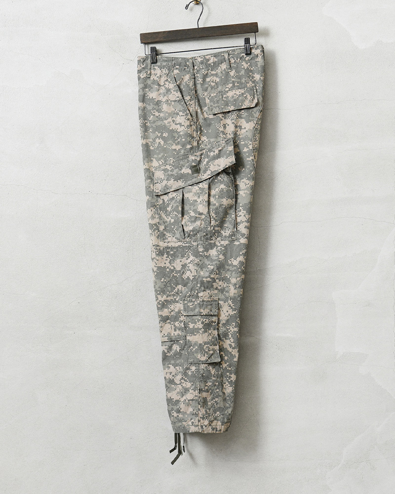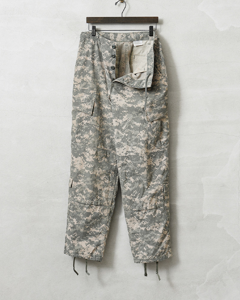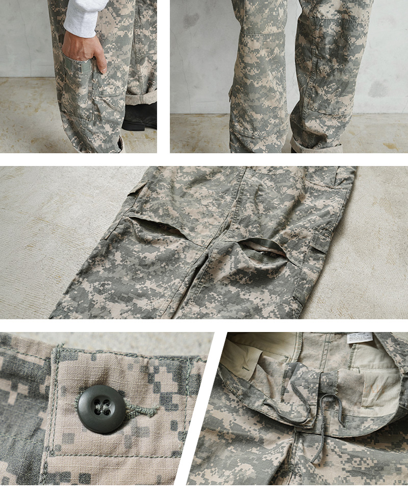 | 商品説明 | リジェクト 訳あり品 実物 USED 米軍 ACU FLAME RESISTANT コンバットカーゴパンツ UCPのご紹介です。 制式名称:TROUSER, ARMY COMBAT UNIFORM FLAME RESISTANT 米陸軍の標準的な迷彩服として2004年から2019年まで採用されており、UCP(Universal Camouflage Pattern)が他の迷彩にない落ち着いた雰囲気をもつコンバットカーゴパンツが入荷しました。 難燃性レーヨンとアラミド繊維をメインに使用していますので、優れた難燃性を発揮する機能的なリップストップ生地を使用しています。5~8mm間隔で格子状に織り込まれた生地で、引き裂きに強く軽量。洗濯などで縮むこともなく、シワにもなりにくいタフなファブリックです。 デジタル技術の数値データをもとに解析された機能的な「デジタルカモフラージュ」は、現代的な迷彩パターンとして各国で広く採用されています。米海兵隊で採用されていたMARPATのパターンを、様々な地形で目の印象に残らないように計算されたグレー基調にアップデート。ミニマルで都会的なグラフィックパターンは、現代のストリートの要素ともマッチするタウンウェアのデザインとして多くのブランドで取り入れられています。 ACUは「Army Combat Uniform」の略称で、BDU(Battle Dress Uniform)を踏襲したディテールに、斜めに配置されたカーゴポケットのフラップの形状や、膝部分にはパットを入れて膝を保護できるポケットなど機能性もアップグレード。また通称「8ポケカーゴ」と呼ばれるように、バック・サイド・カーゴ・膝下それぞれが両側に配置されているので収納性も抜群。特にカーゴポケットには中身が落ちないよう、間口にドローコードでストッパーが搭載されているなど機能性にも優れたおもしろいディテールが満載です。 優れた機能性に、取り入れるだけでワンランク上のコーディネートが楽しめる魅力的なデザイン。近年放出が少なくなり、今後入手が困難になることが予想されるアイテムです。 破れや激しいほつれや、ウエストドローコードの欠損などの全体的に不具合のある商品を選別しております。多少のリペアを施していただいてからの着用、もしくはリメイク資材としてもおすすめです。ファーストクオリティの品質を強くお求めの方は念の為ご購入をお控えくださいますようお願い致します。 |