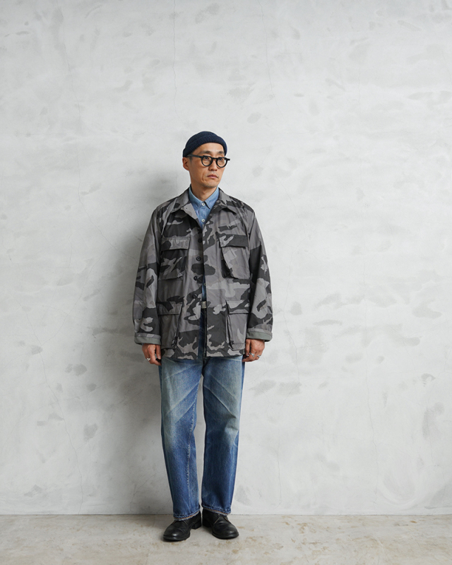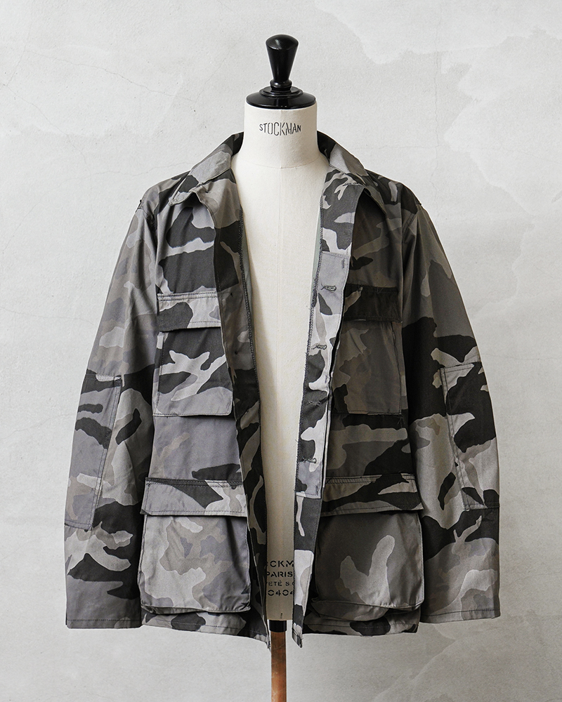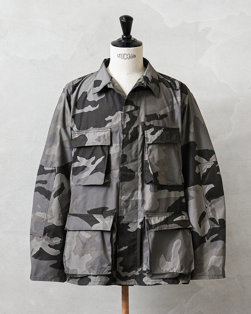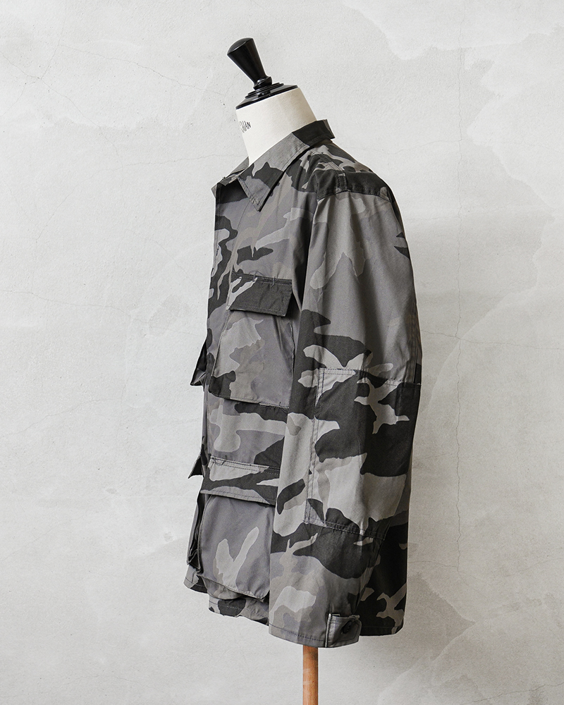 タフなアメリカ製で、グレー系を基調とした都市部や街中での風景に溶け込むシティカモがファッション性の高いBDUジャケット。丈夫なコットン50%、ナイロン50%の混紡生地を使用。4つのフラップポケット、左胸ポケット内のペンホルダー、肘の二重補強など実用的なディテールが随所に見られます。内マチポケットや小ぶりな襟、細めの袖口タブなどBDUの特徴も備えています。実物アイテムとも引けを取らない機能性に、スタイリッシュなモノトーンの迷彩柄。戦地向けの一般的な迷彩とは異なり、タウンユースやストリートスタイルに馴染みやすく、コーディネートにさりげなく取り入れたい一着です。