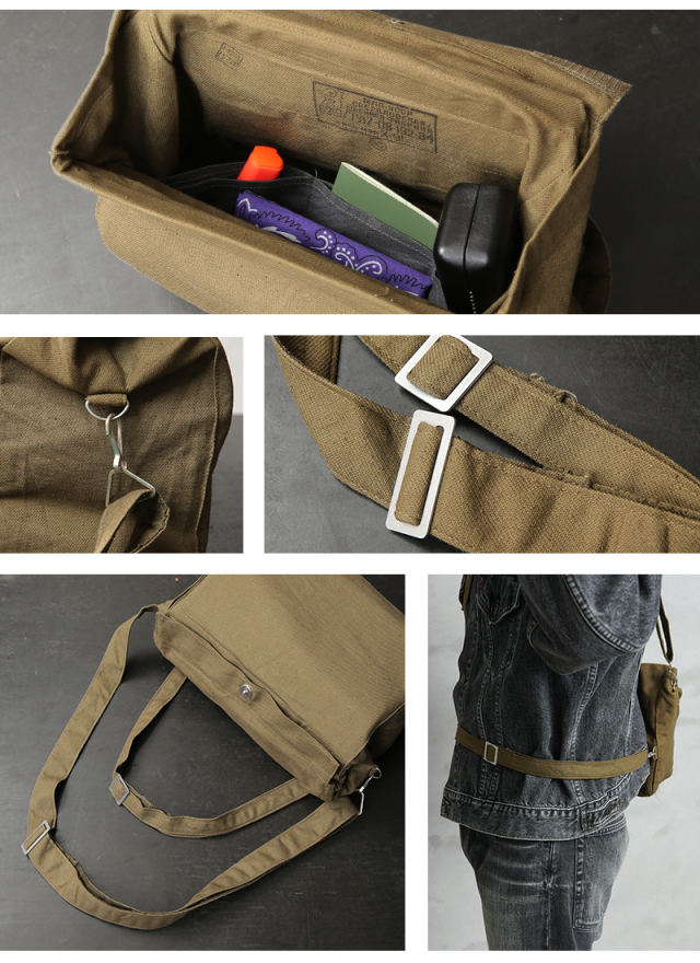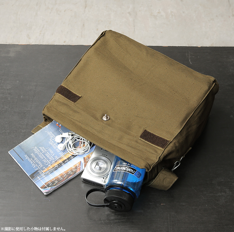 1930年代~1980年代のソ連時代に採用されていた、汎用軍用ガスマスクを持ち運ぶためのガスマスクバッグです。 当時から軍や公的機関向けの装備品を手掛けていたスヴェルドロフスク縫製工場で製作されており、シンプルな作りながらヴィンテージの風合いが目を惹く一品。 程よい厚さで軽量ながら耐久性の高いキャンバス地に、肩と腰を固定し安定させる二本のストラップ。サイドやメインコンパートメントに仕切りポケットが多数あり、財布やスマートフォン、ルームキーなど十分に収納できる使い勝手の良い仕様になっています。ボタンとベルクロの二段開閉で、使用は簡単ながらしっかりと荷物を守ることができます。 男女で使用しても違和感のない普段使いにピッタリの絶妙なサイズ感。いかにも軍用品らしい無骨な雰囲気ながら、タウンユースにも通用する機能性でカジュアルやワーク系と相性抜群の魅力的なアイテムです。 ※撮影に使用した小物は付属しません。 |