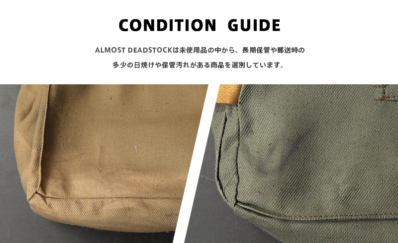 ※新品未使用品ではございますが、長期保管や輸送時に生じた保管汚れ、経年による変色や日焼けがあるものを【ALMOST DEADSTOCK】として販売しております。 商品の状態についてご指定いただくことは出来ませんので予めご了承ください。