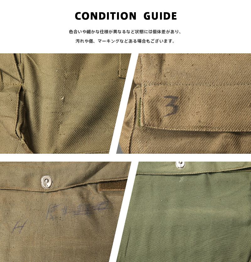 | 商品状態 | 軍放出のUSED ※商品によって色合いや細かなディティールが異なる場合や、多少の汚れやマーキングなどがある場合もございます。 ※商品の状態についてはお選び頂けません。予めご了承下さい。 |
