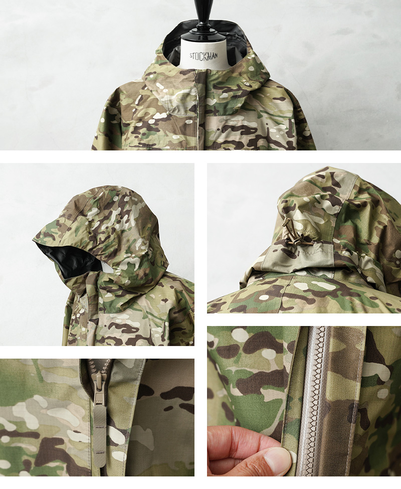 | 商品説明 | 実物 新品 デッドストック 米軍 PTG PCU LEVEL6 GORE-TEX ジャケット MultiCam 制式名称:JACKET,LEVEL 6 市場にほぼ出回ることのない、スペシャルなアイテムが入荷しました。 特殊部隊向けの高機能ウェアであるPCU(Protective Combat Uniform)の開発にも携わったPTG社の実物のPCU LEVEL6 GORE-TEX ジャケットの未使用デッドストックです! PCUは、米軍のECWCSと同様の設計思想により7段階のレイヤリングに分かれたアイテムで展開されています。LEVEL6はGORE-TEX(ゴアテックス)が使用されたハードシェルジャケットとパンツで構成されています。 PTG社が開発を手掛け、PECKHAM, INC.が製造を行った「LEVEL6 GORE-TEXジャケット」は軽量で防水性に優れたGORE-TEX素材のレインジャケットで、内側はシームテープ処理が施され、サイド寄りに配置された収納力に優れた両胸のジップポケット、フロントとポケットの開閉にはYKK製止水ファスナーが採用されています。 大型のフードや、裾のドローコード、ゴムで伸縮してベルクロでも調節可能な袖口など、アウトドアウェアとしての機能性も兼ね備えた設計が特徴です。実用性とデザイン性を高いレベルで両立した仕上がりとなっています。 米軍特殊部隊向けの防水・防風・透湿性を兼ね備えた高機能ジャケットは長時間の降雨下でも内部をドライに保ちます。PTG社のミリタリーラインは現在では製造されておらず、デッドストックが放出されることは今後なくなってしまう可能性が高く、市場に残る個体が減る一方の希少なアイテムです。 |