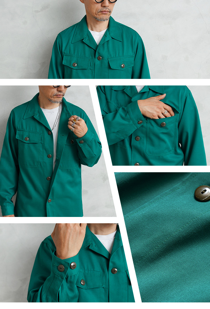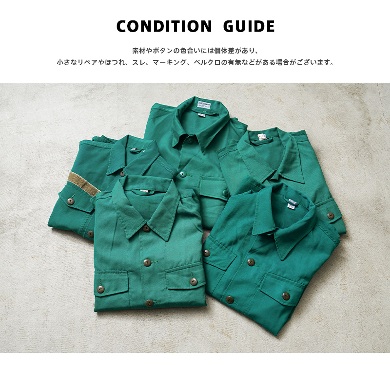 オーストリア陸軍が所有する装備であることを表す「HEERESEIGENTUM」という記載がされた、オーストリア軍が関連するCIVIL DEFENSE(民間防衛)や、戦闘に関連しない整備や後方支援などの用途で使用された青みがかった鮮やかなグリーンのコンバットシャツです。年代に関しては1980年代前後が多く入荷している印象です。オーストリア軍でも同じデザインのコンバットシャツは存在しますので、戦闘以外のワークウェアとして使用されていたことが推測されます。柔らかでしっかりとしたツイル素材が採用されています。ボタン開閉の2箇所のフラップポケット、裾はスクエアテールでシャツを出したスタイルが様になります。デニムやチノパンとの相性も良く、コーデのポイントとして取り入れていただけるアイテムです。