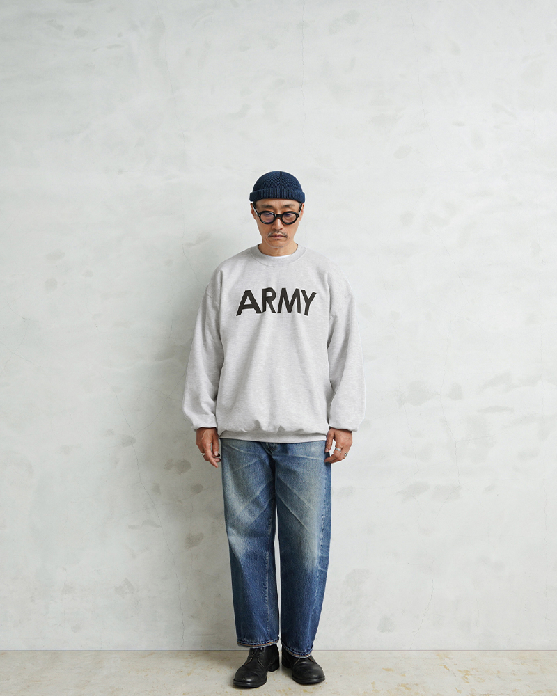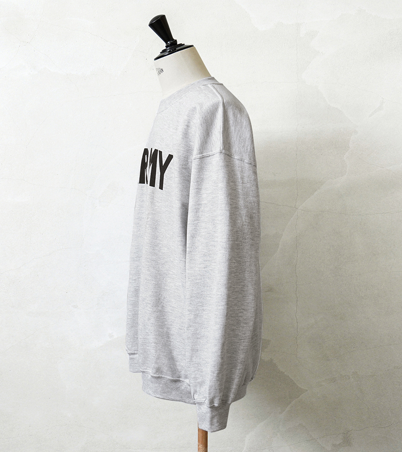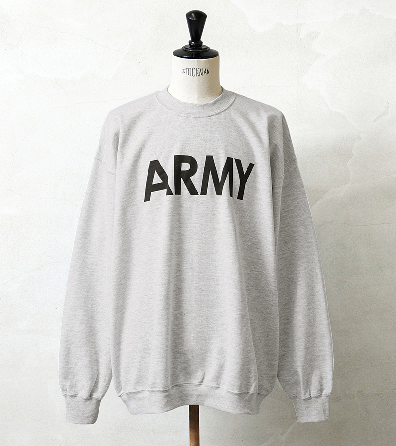 Tシャツやスウェット商品において北米No,1の売り上げを誇るブランドGILDAN製のARMYロゴプリントが目を惹く民生品スウェットシャツが入荷しました。 首元はスタンダードなクルーネックで、肩の切り替えによる腕のゆったりしたシルエットが特徴的です。 生地にはコットン×ポリエステルが使用されており、軽量で速乾性にも優れています。裏側は肌触りの良い起毛タイプとなっており保温性も抜群です。 着心地の良さとシンプルなデザインは、トレーニングウェアとしてはもちろん、カジュアルウェア、そしてルームウェアとしても着まわせるオススメのアイテムです。 |