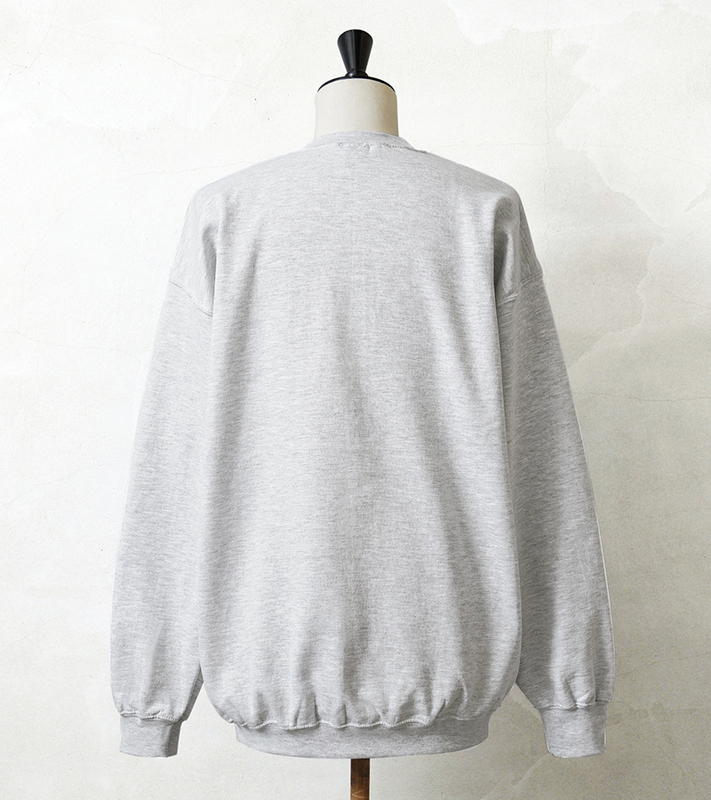 首元はスタンダードなクルーネックで、肩の切り替えによる腕のゆったりしたシルエットが特徴的です。 生地にはコットン×ポリエステルが使用されており、軽量で速乾性にも優れています。裏側は肌触りの良い起毛タイプとなっており保温性も抜群です。