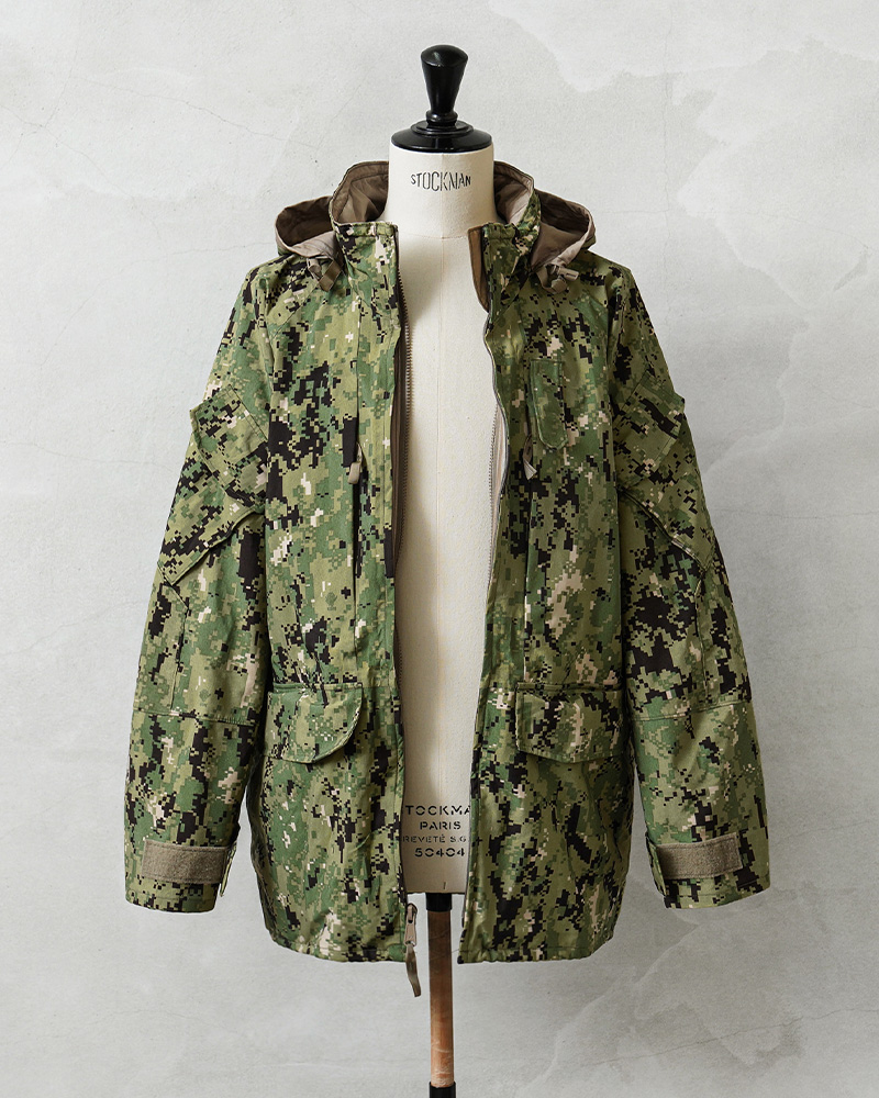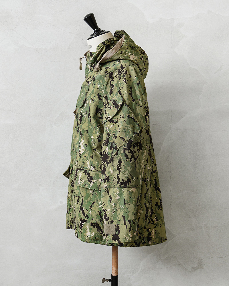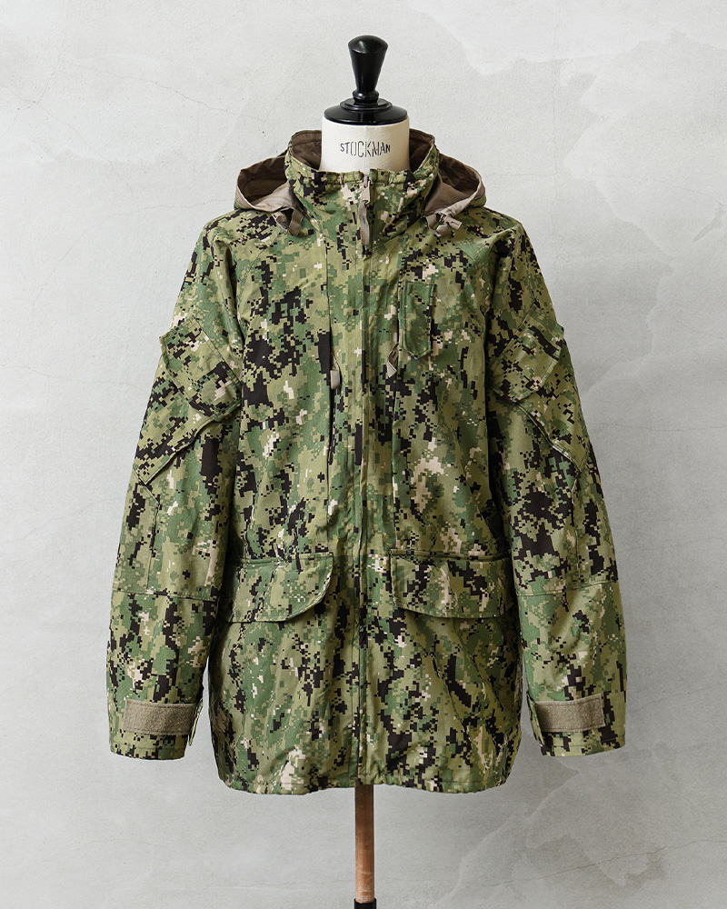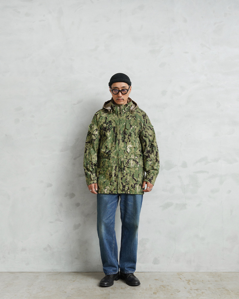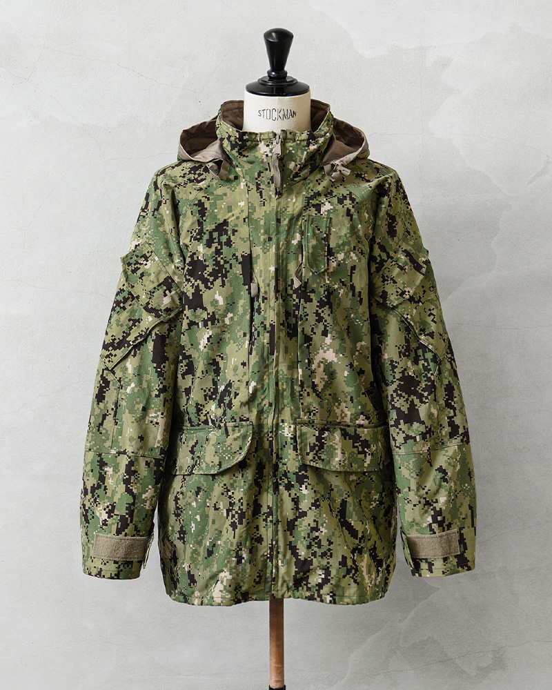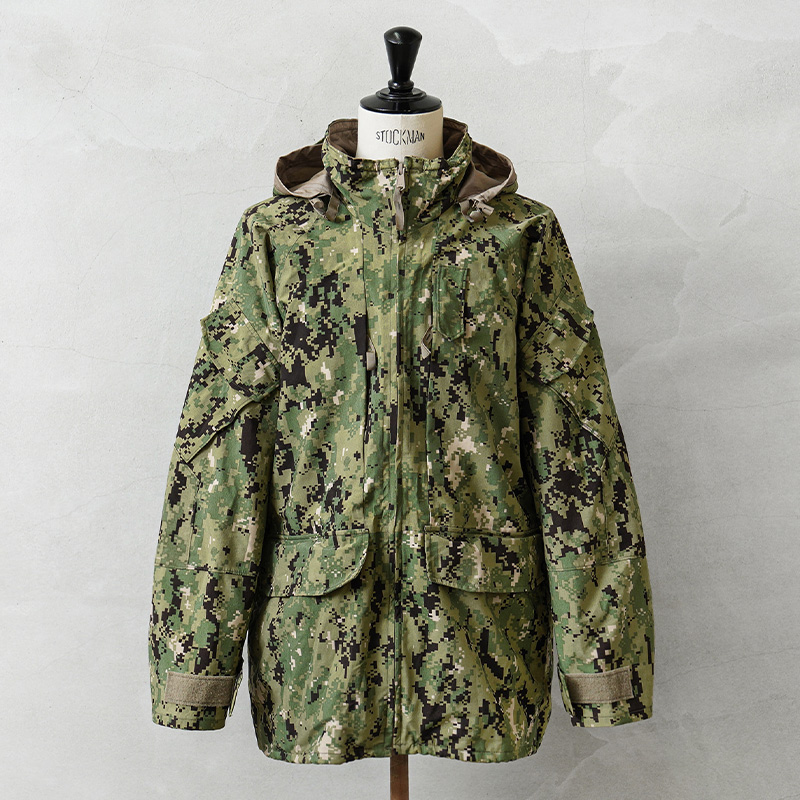 | 商品説明 | 実物 USED 米海軍 NWU GORE-TEXパーカー TYPEIII AOR2のご紹介です。 制式名称:PARKA,WORKING,US NAVY TYPE III 米海軍特殊部隊SEALsやEODなど、海軍の陸上戦闘部隊で現在採用されているECWCS GORE-TEXパーカーが登場。2010年頃より採用が開始された第2世代のNWU (Navy Working Uniform) のTYPEIII AOR2は、レイヤリングをすることで様々な気温に対応する極寒冷気候衣料システムであるECWCS(Extended Cold Weather Clothing System)のGen1、Gen2で言えばレイヤー4、Gen3で言えばレベル6に該当するジャケットです。 米軍のGORE-TEXパーカーと言えばウッドランド迷彩のGen1パーカーが代名詞ですが、こちらの後継モデルであるGen2パーカーは更に改良され進化を遂げたハイスペックモデル。 完全防水・通気性生地のGORE-TEXを使用し、錆びない樹脂製のYKK止水ジッパーで、縫い目にシームテープが貼られた高い防水性。ボタンは極力使用せず、ポケットなどにベルクロを多用し利便性を向上、襟はスタンドカラーで、Gen2パーカーはフード収納式になっています。 森林地帯での使用を想定した迷彩のウッドランド・デジタル・カモフラージュ柄で、ストリートに馴染みやすい垢抜けた印象。申し分の無い機能性と近代的なデザインが、デイリーからアウトドアまで幅広く網羅してくれ、コーディネートにも映える一着です。放出が稀で、希少な現行サープラスアイテムをお見逃しなく。 |
