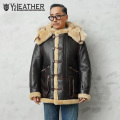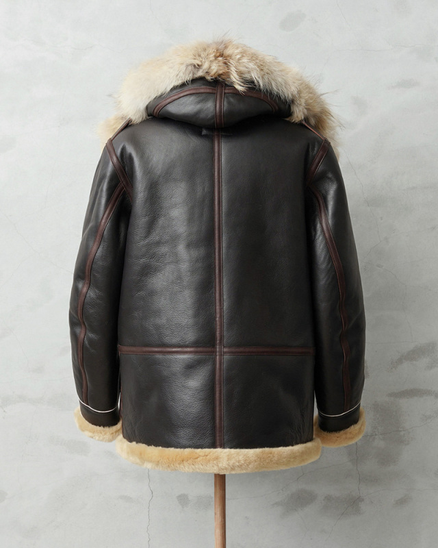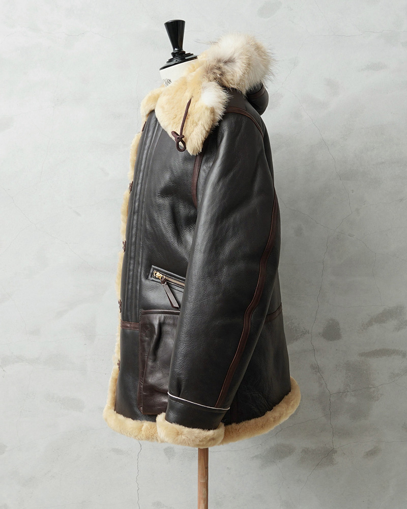 第二次世界大戦中にアメリカ陸軍航空隊(USAAF)が、アラスカなどの極寒地域で任務に就いた航空乗務員や地上要員のために支給されたのが「B-7フライトジャケット」です。B-7フライトジャケットは、通称「アラスカンジャケット」と呼ばれ、エクストラヘビーゾーン(摂氏-30度~-50度)での行動を前提に設計された、過酷な環境に挑むための装備として誕生しました。シープスキンのコストの高さなどから1941年~1942年のわずか1年の製造期間の短さで、実物が出回ることの少ない伝説的モデルの1つです。このB-7をベースに、Y'2 LEATHERが現代の技術と審美眼で再構築しました。