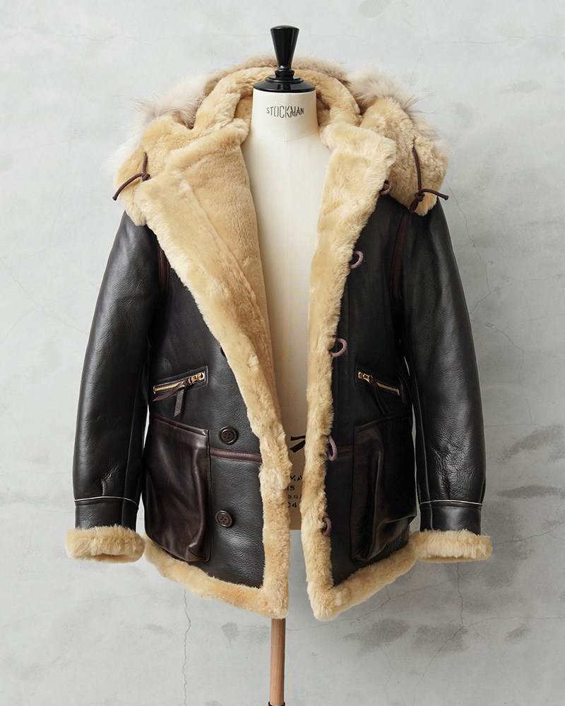 | 商品説明 | Y'2 LEATHER ワイツーレザー COLOMER MOUTON Type B-7 フライトジャケットのご紹介です。 第二次世界大戦中にアメリカ陸軍航空隊(USAAF)が、アラスカなどの極寒地域で任務に就いた航空乗務員や地上要員のために支給されたのが「B-7フライトジャケット」です。 B-7フライトジャケットは、通称「アラスカンジャケット」と呼ばれ、エクストラヘビーゾーン(摂氏-30度~-50度)での行動を前提に設計された、過酷な環境に挑むための装備として誕生しました。シープスキンのコストの高さなどから1941年~1942年のわずか1年の製造期間の短さで、実物が出回ることの少ない伝説的モデルの1つです。このB-7をベースに、Y'2 LEATHERが現代の技術と審美眼で再構築しました。 素材には、スペイン・バルセロナに拠点を構える、創業から200年以上の歴史を誇る「COLOMER社」による、最高級ムートンを使用しています。毛足が長く、しっとりとした柔らかな肌触りが特徴で、袖を通した瞬間から抜群の暖かさを感じられる素材です。袖の内側まで密度の高いムートンが使用され、表面も非常にしなやかで、ブラック寄りのダークブランという感じの色目で、滑らかな質感に仕上がっています。 主要な縫製部分や高い耐久性が求められる箇所には、すべてホースハイド(馬革)で補強し、強度と高級感を両立。首元には防寒性や防風性を高めるレザーストラップ付き。さらに、ウエストの大きなパッチポケットにも同じホースハイドを使用した細部まで贅沢な仕様となっています。 フロントはジッパーで開閉し、その上をさらにボタンとループで閉じるようにウィンドフラップのような設計がされており、風の侵入を防ぎます。パッチポケット上部にはさらにジップ開閉のポケットが付属します。 ムートンフードは一体型のデザインで、フード先端には贅沢にボリュームのあるラクーンファーが使用されています。フライトクルーが吹雪に晒されても視界と体温を守るための仕様で、オリジナルの重厚感と迫力あるシルエットを損なわない設計になっています。 実物の空気感を継承した究極の防寒性を有したB-7フライトジャケットです。 ※製品の特性上、若干の傷、パーツごとの革の質感に若干の個体差がある場合がございます。 |