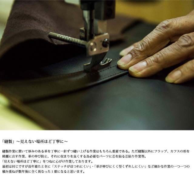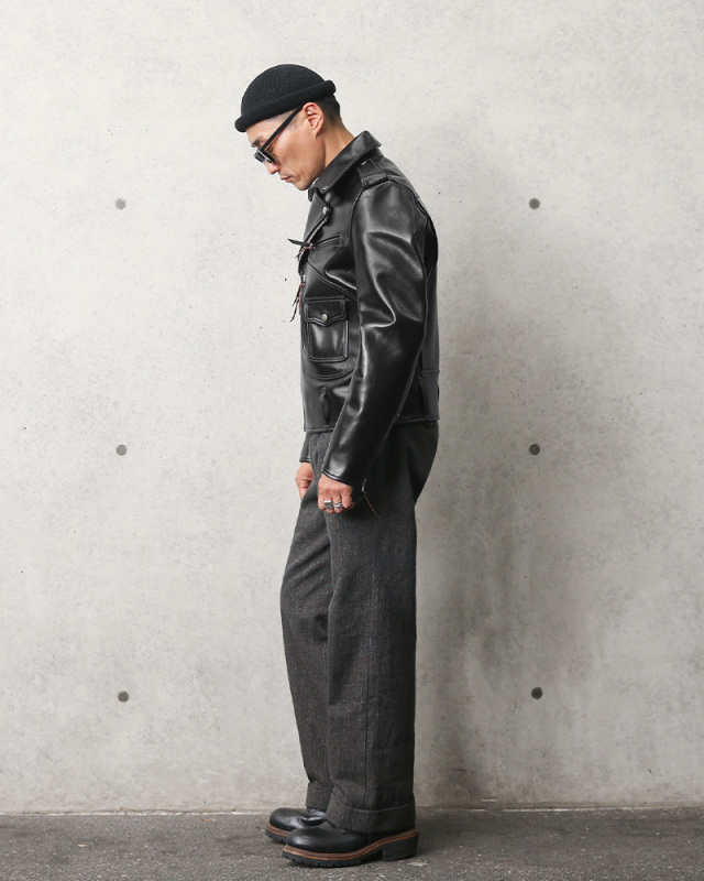 | 素材 | 表地:VINTAGE HORSE (馬革) 身頃裏地:千鳥柄起毛コットン 袖裏:ナイロン |