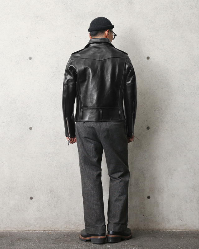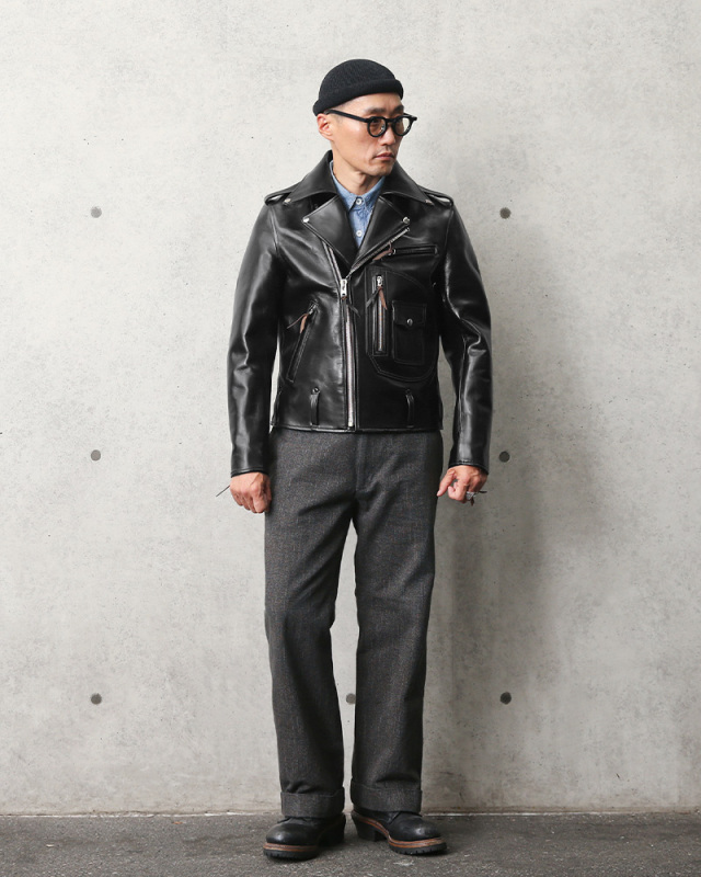 | 商品説明 | Y'2 LEATHER VINTAGE HORSE(ホースハイド)D-POCKET ダブルライダースジャケットのご紹介です。 品番:HR-55 存在感のあるDポケデザインが特徴的なブランド大定番のホースハイドダブルライダース。漆喰の黒と裏地の千鳥コットンレッドが美しい一着です。ポケットのフラップ裏、エポレット、ベルトループの裏にはホースヌバックを使用しています。 馬革は下地を一度茶色に染め、その後、ピグメントにて黒で最終仕上げをした”VINTAGE HORSE”と呼ばれる厚み1.4mm前後の茶下地のマテリアルを使用しています。革の業界に携わり40年余り。一枚一枚丁寧に作り上げた馬革は着込むほどに茶色の下地が随所に現れ、この上ない表情を見せてくれます。裏地には通常シャツなど表地で使用するほど厚みのある起毛コットン生地を使用。千鳥柄をプリントし、その後、けば立たせることにより独特の雰囲気に仕上がっています。袖裏はナイロンになっており、袖通しも良い仕様です。 定番のダブルライダースは是非一着は持っておきたいデザイン。生涯愛していただける一着としてお届けできればと思います。 ディティール ・茶下地、厚み1.4mm前後のピグメント仕上げホースハイド ・千鳥柄の起毛コットン×ナイロンのコンビ裏地 ・Dポケデザイン ・フロントジッパーポケット×2 ・インナーポケット×2 ・両肩エポレット ・ジッパー開閉の袖口 ・ベルトループ ・背中のアクションプリーツ ・OLD AMERICAN UNIVERSAL刻印のジッパー ・ブランドオリジナル木製ハンガーとガーメントケースが付属 MADE IN JAPAN ※製品の特性上、若干の傷、パーツごとの革の質感に若干の個体差がある場合がございます。 |