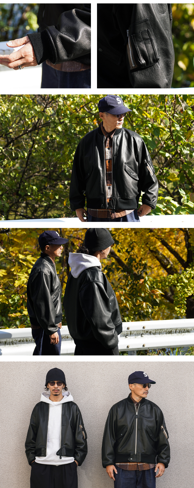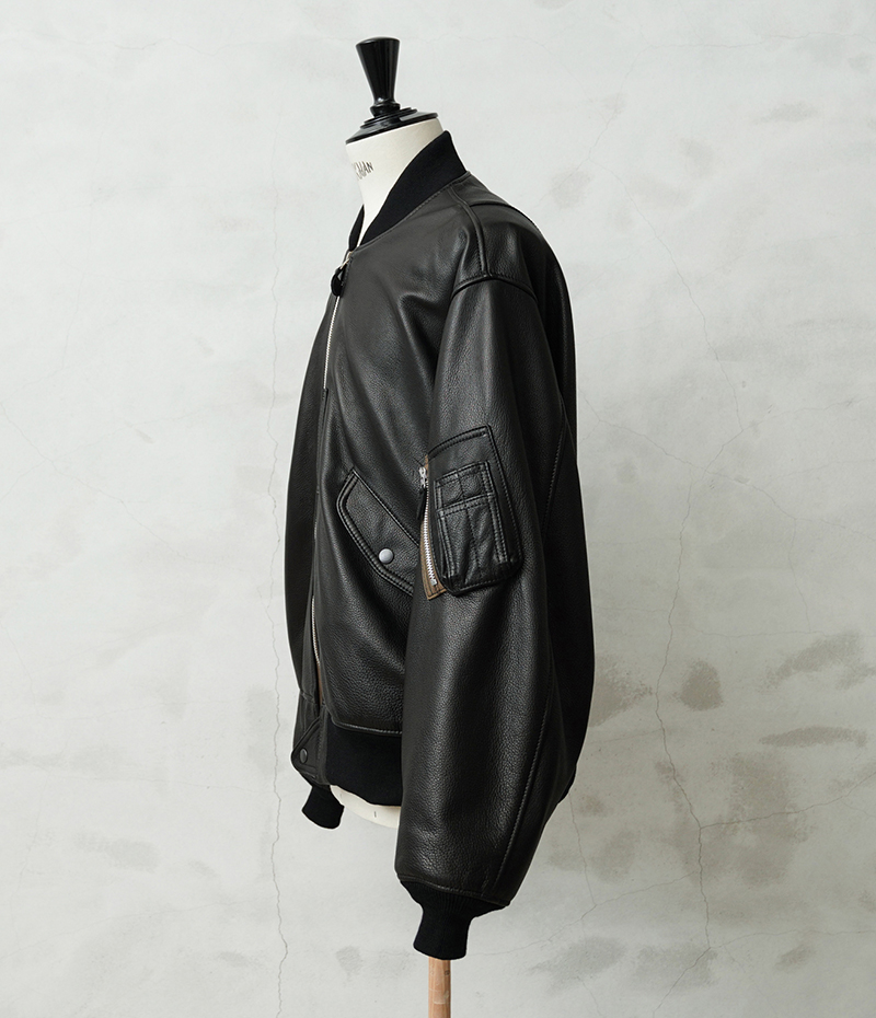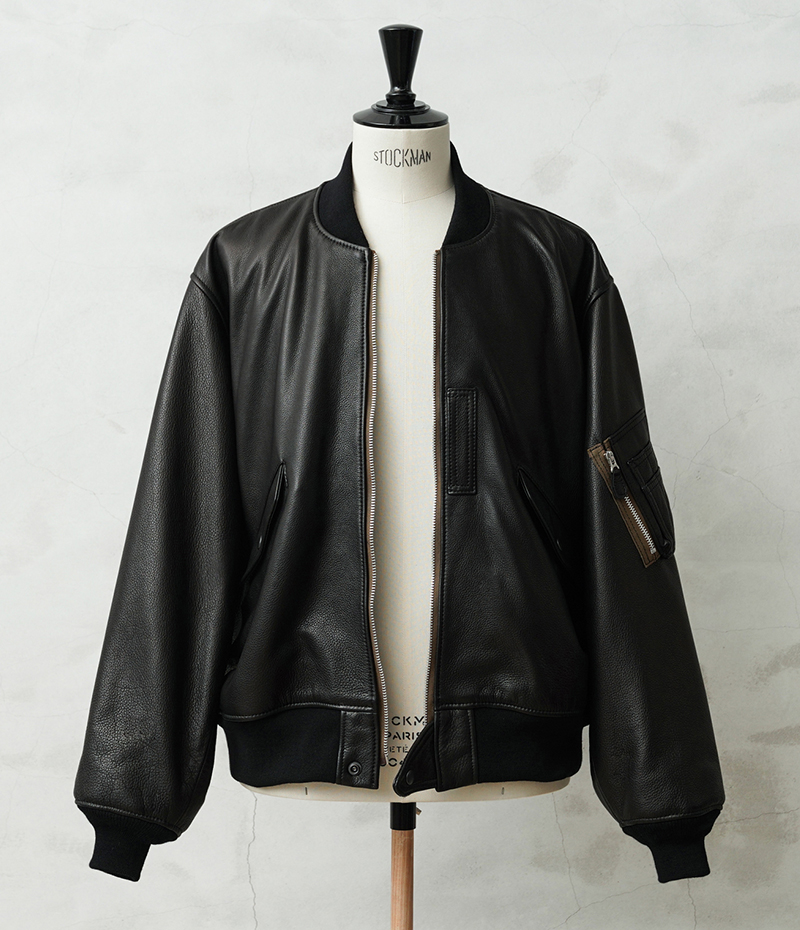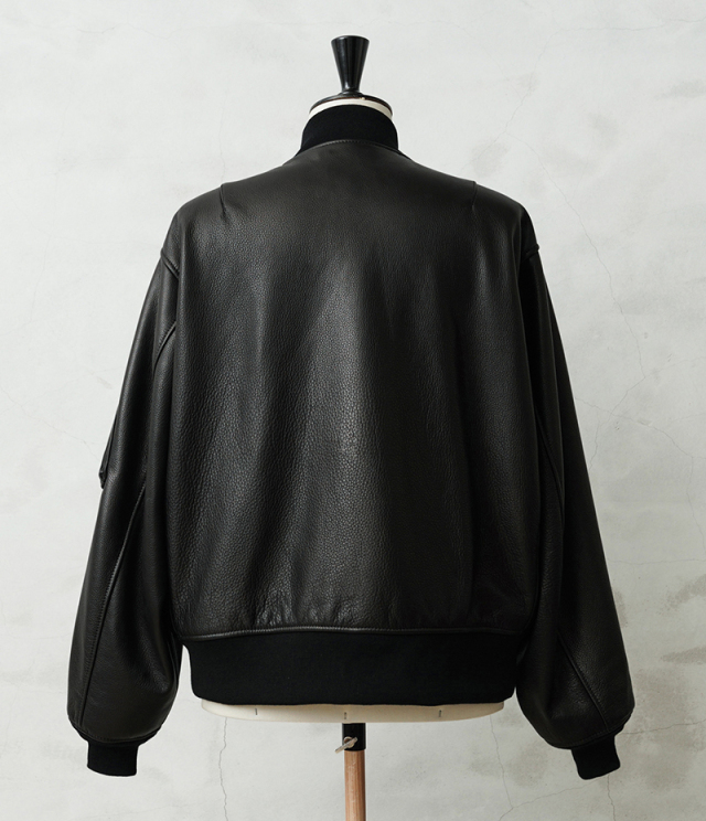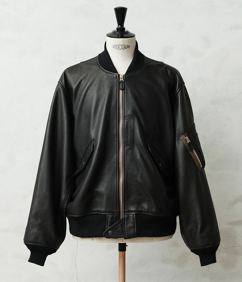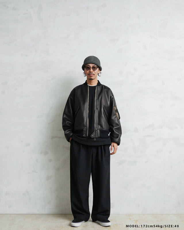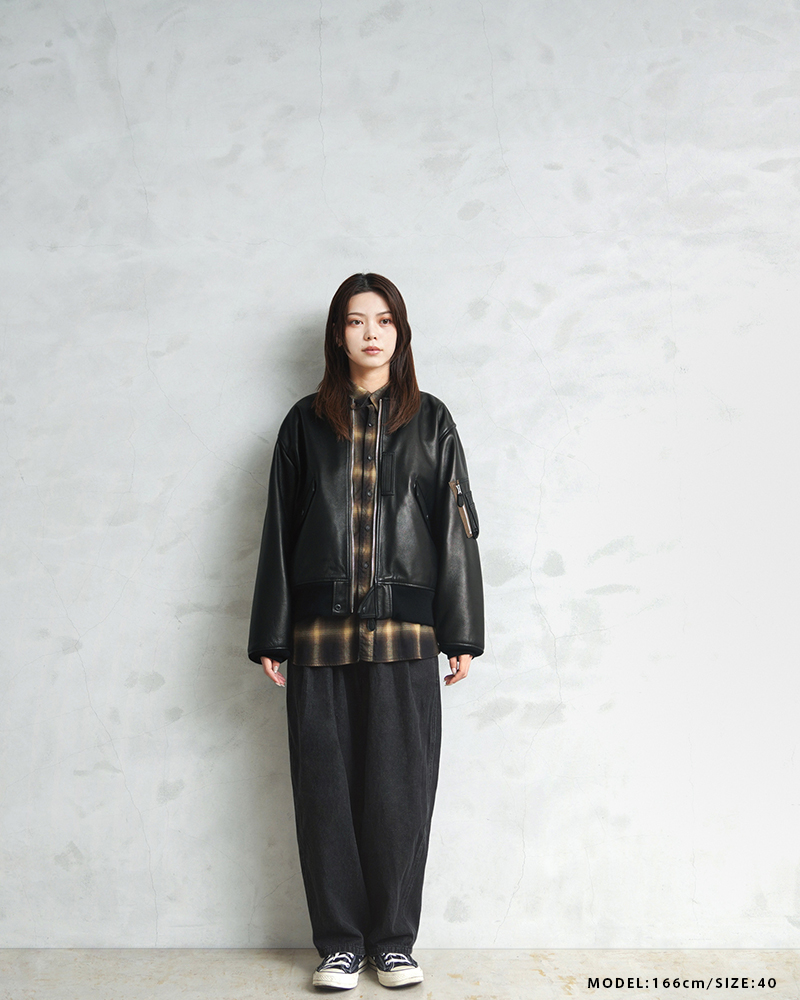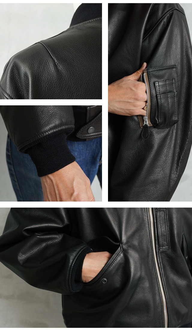 Y'2 LEATHER ワイツーレザー WAIPER別注 ステアオイル レザージャケット TYPE U.S.AIRFORCE L-2 FLIGHT のご紹介です。 1945年にA-2の後継として登場したL-2は、ライト・ゾーン(10℃~30℃)と呼ばれる温度域での着用が想定された軽量なフライトジャケット。1978年に新たに採用されたCWU-36/Pの登場まで、幾度もマイナーチェンジを重ねた息の長いジャケットです。 様々なブランドもサンプリングする米軍の名作をY'2LEATHERが誇る熟練の職人技と上質なステアハイドで仕上げたスペシャルな別注アイテムです。染色には”水染め”という技法を使用しています。専用のドラムの中で水と油と染料を混ぜたものにつけこみ、ゆっくり、しっかり油と色を入れていくことで革はやわらかい仕上がりに。時間と手間がかかりますが、上質な着心地と強度を持ち合わせた最高の一着に仕上がっています。 サイジングは当店オリジナルのL-2で定評のあるデザインを踏襲させております。実物を分析しアームホールの立体的な構造までこだわりぬいて作り上げたパターン。着用した際に生地のドレープが綺麗に見えるこだわりのシルエットです。 風合い豊かでありながらシープのようなしなやかさと着やすさを持ち合わせたステアハイドは、このシルエットに非常にマッチするファブリック。羽織りやすくリラックス感のある着心地で、レザー初心者の方や女性の方にもオススメな一着となっております。 フラップ付きのポケットや左袖のシガーポケット、フロントのホースタブ、裾の三角フラップなどL-2ならではのディテールはしっかりと再現しつつ、エポレットを廃し、シンプルに仕上げたコーデに使いやすい仕様です。裏地にはなめらかで肌触りの良いキュプラを使用。袖通しもよく静電気が起こりにくいのも特長です。 内側襟元のネームはミリタリーデザインだからこそのU.S.AIR FORCEロゴをモチーフにしたデザイン。ジッパーテープはカーキ色が使用され、ビンテージミリタリーテイストな雰囲気も感じられます。着こむほどにあらわれる磨いたような艶など経年変化もこちらの革の魅力。 生涯愛していただける一着としてお届けできればと思います。 MADE IN JAPAN |