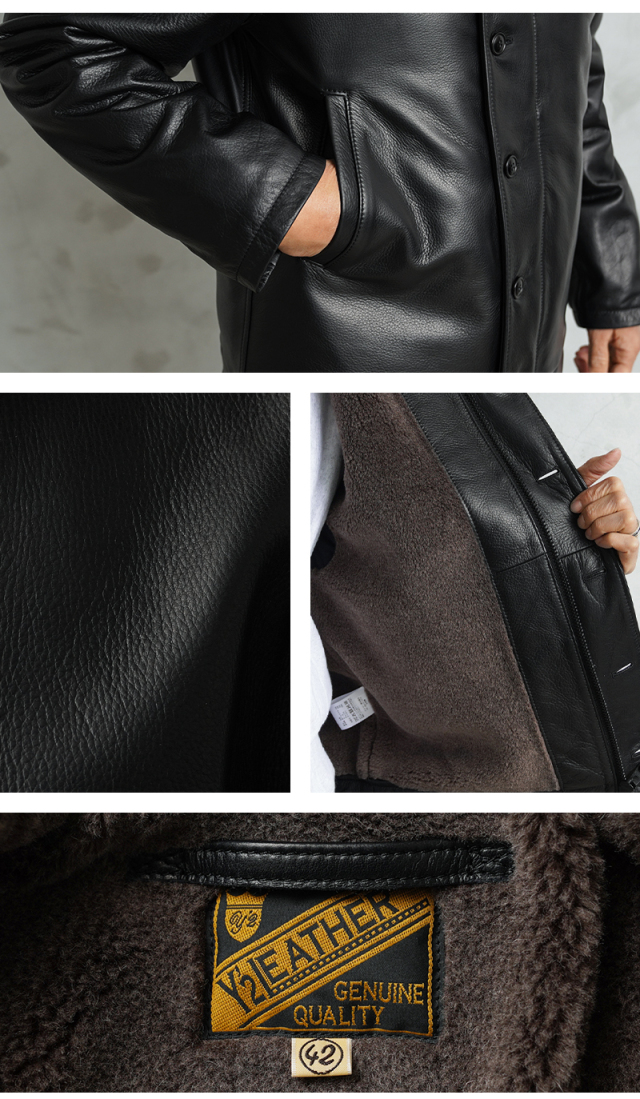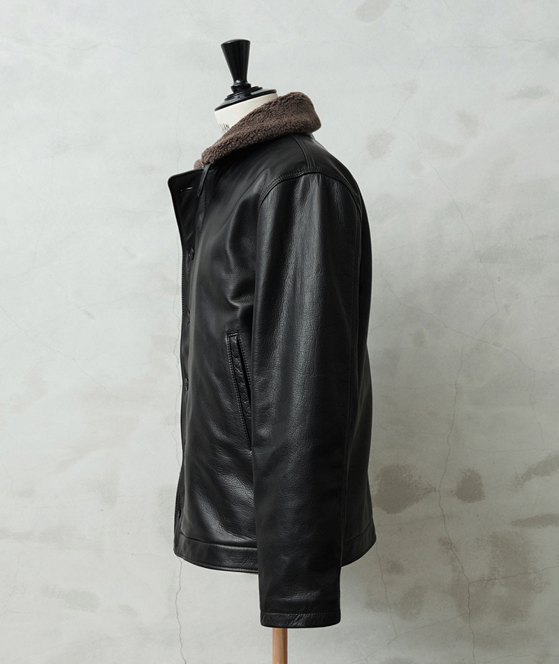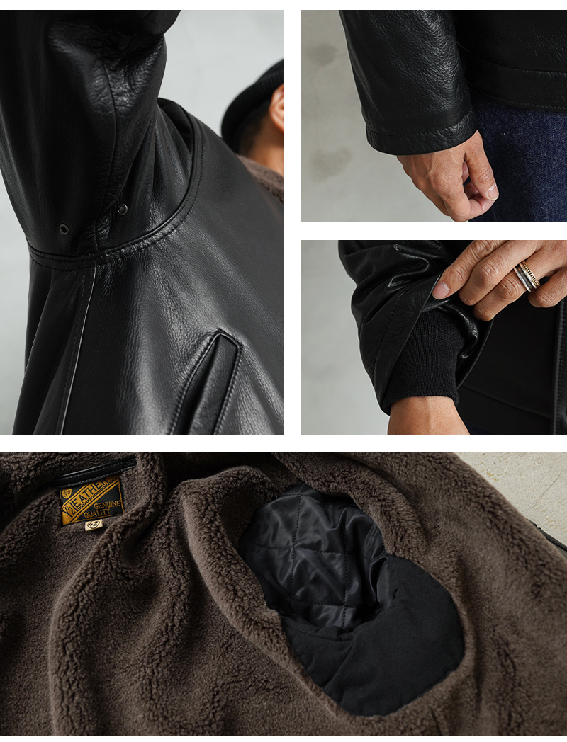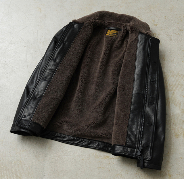 | 素材 | 表地:ステアハイド(水染めステアオイル) 裏地:ポリエステル50%、ウール30%、アルパカ20% 裏地(袖):ナイロン100% |