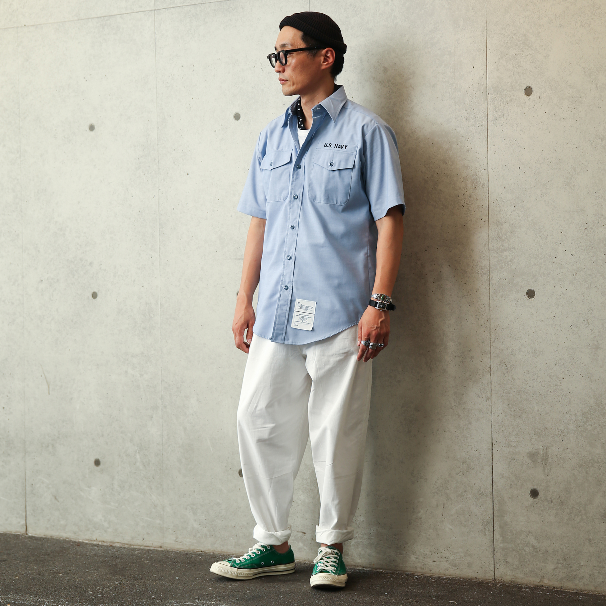 トップスには米海軍のシャンブレーシャツをラフに合わせて全体的に明るめのトーンで爽やかに!